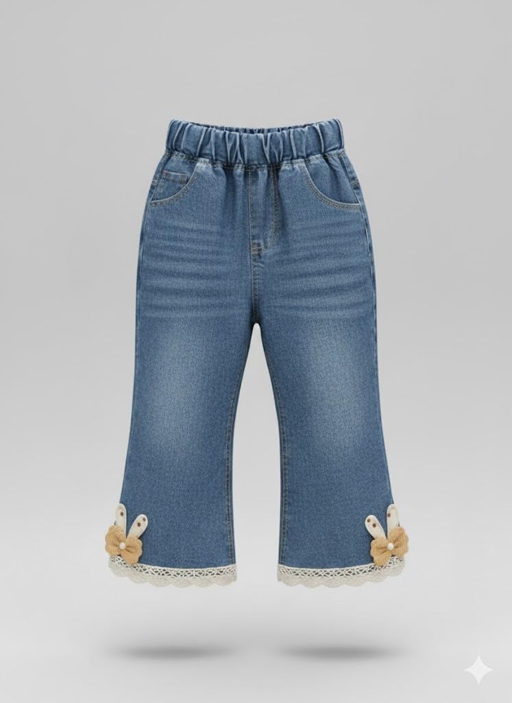 These Girls Classic Denim Jeans are crafted from 100% cotton denim to provide natural softness, breathability, and long-lasting durability. Designed with an elasticated waistband, they ensure a comfortable and secure fit for everyday wear. Offered in multiple attractive designs and patterns, these jeans combine playful style with practical comfort. The regular-fit silhouette supports easy movement, making them a dependable choice for daily activities, outings, and casual dressing.