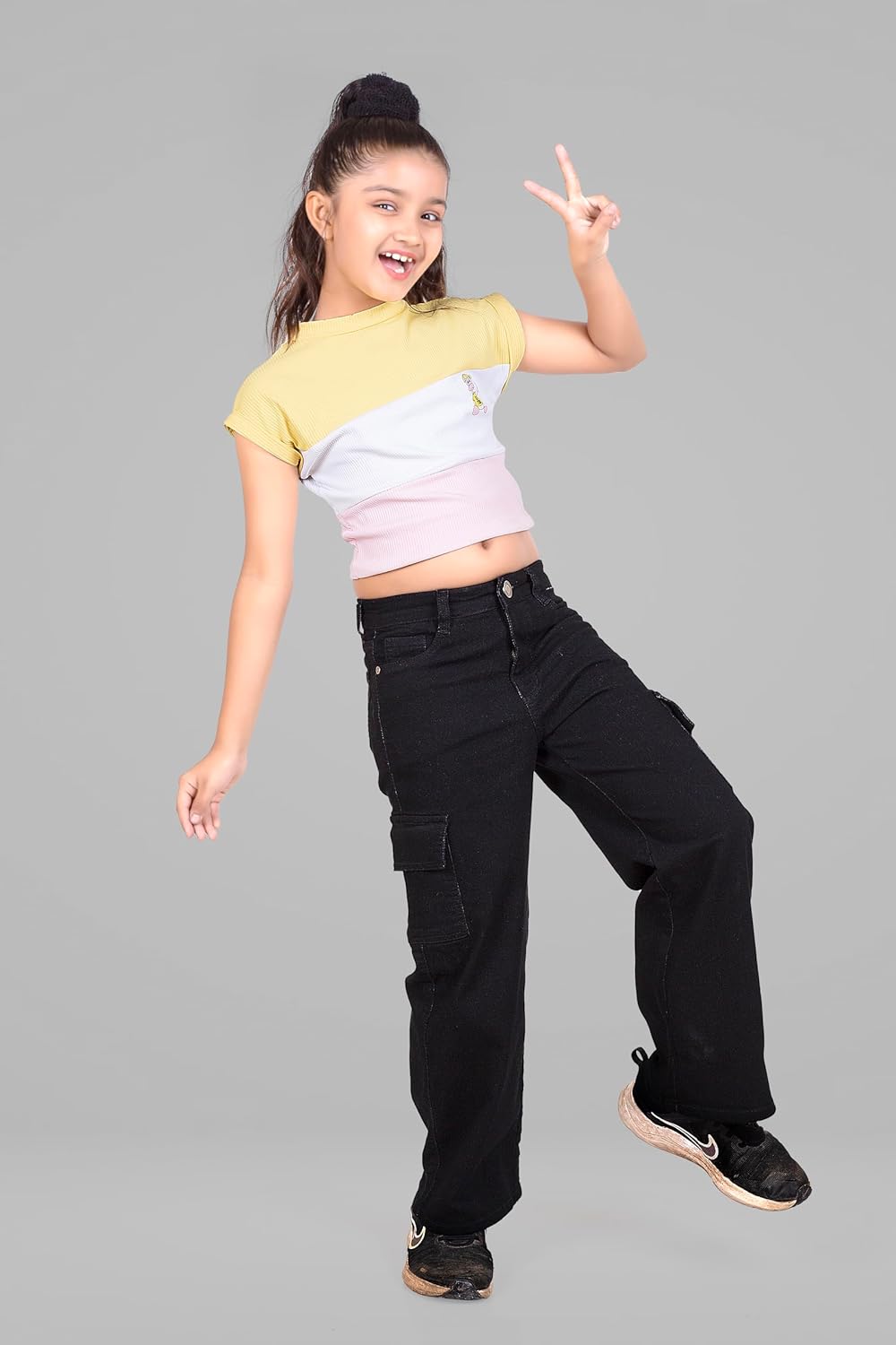 #ADBUCKS #Stretchable #High #Rise #Cargo #Style #Straight #Fit #Jeans #Girls,
