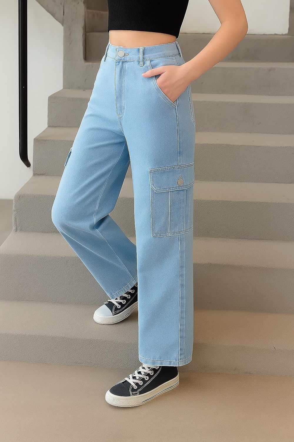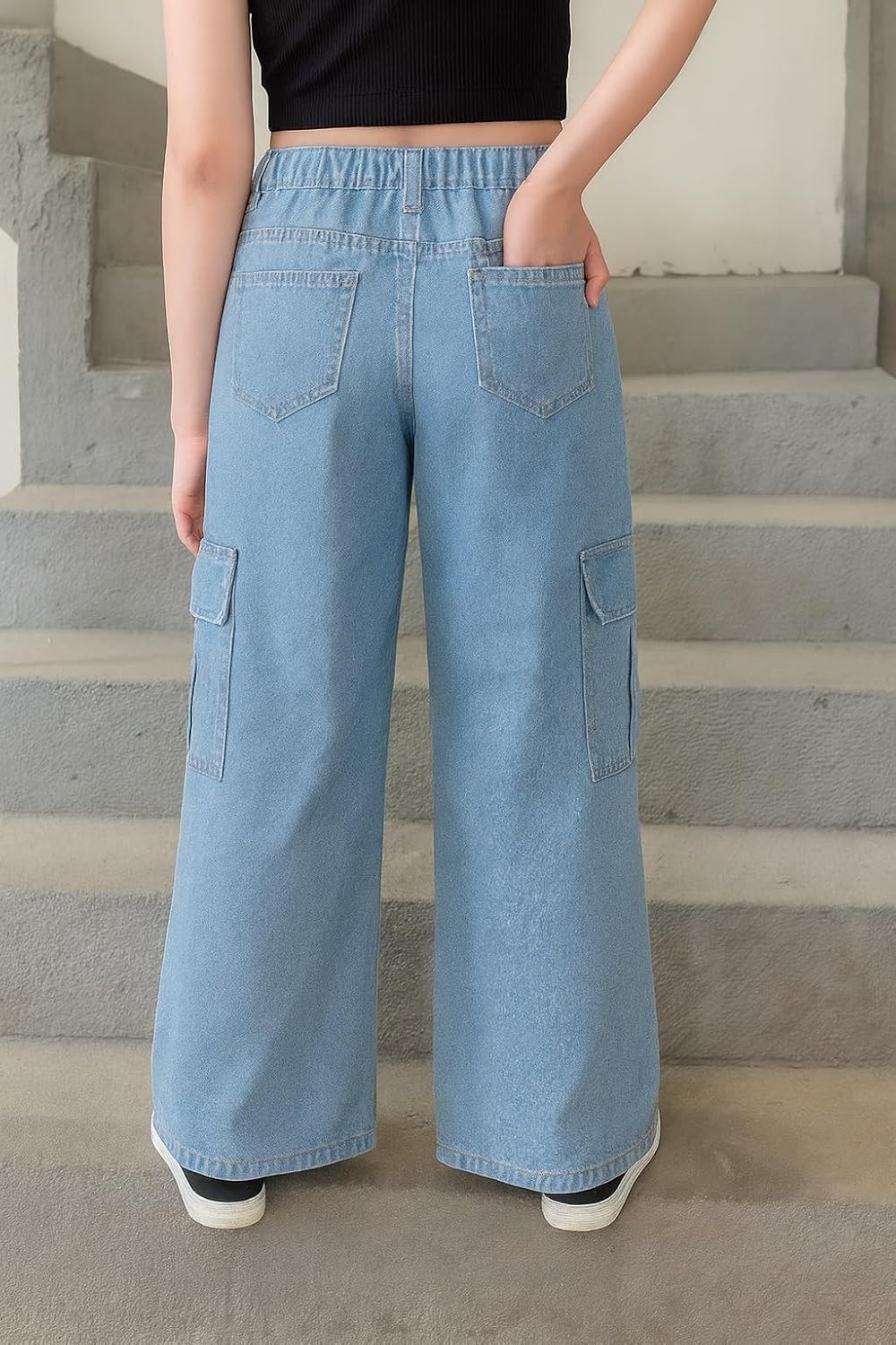 #ADBUCKS #Stretchable #High #Rise #Cargo #Style #Wide #Leg #Jeans #Girls #Girls #Jeans,
