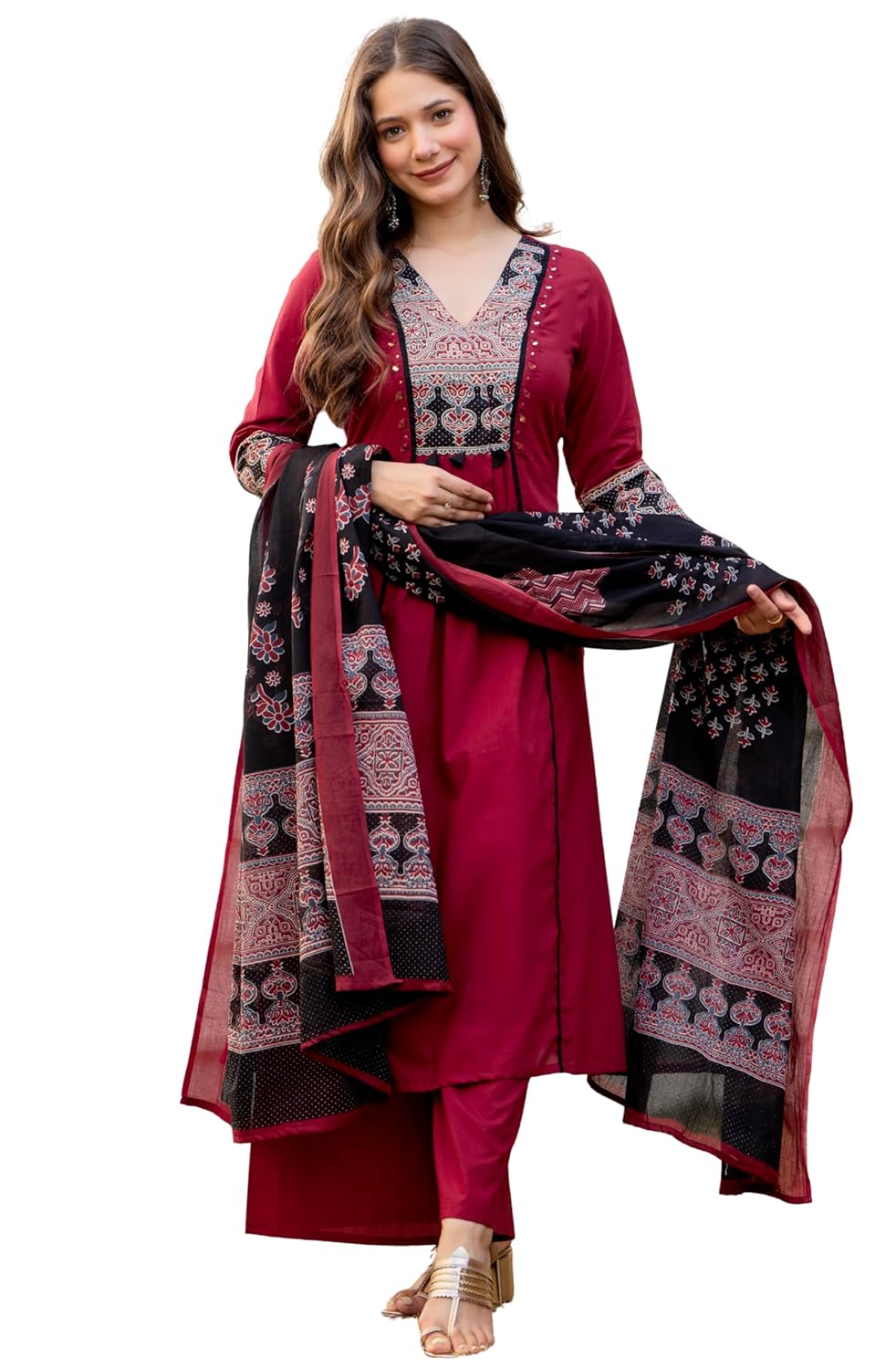 Bring home timeless elegance with this women’s kurta set with pant and dupatta, designed to give you the perfect blend of style, tradition, and comfort. Crafted from premium quality fabric, this ethnic wear set is ideal for festivals, weddings, parties, or office wear. The kurta is tailored with fine detailing, paired with a comfortable pant and a beautifully designed dupatta, making it a complete Indian outfit for women. Whether you’re getting festive ready for Diwali, Karwa Chauth, Eid, Rakhi, Haldi, or Mehendi ceremonies, or simply looking for a daily wear kurta set for office and casual outings, this suit set fits all occasions. A must-have ethnic wear piece for every woman’s wardrobe, it also makes for a perfect gift for your loved ones. Kurta sets for women | Kurta pant set with dupatta | Women suit set | Party wear kurta set | Wedding wear Kurta set | Indian ethnic wear | Cotton kurta set | Festive kurta set | Traditional dress for women | Kurta set for office wear | Kurta set with dupatta festive | Women ethnic wear online