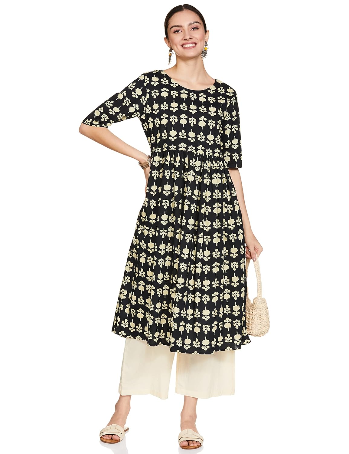DESCRIPTION: Amazon Brand – Myx offers high-quality Indian wear for women, blending global trends with traditional crafts. These timeless, versatile palazzos come in a range of colours and prints making them a wardrobe essential.
