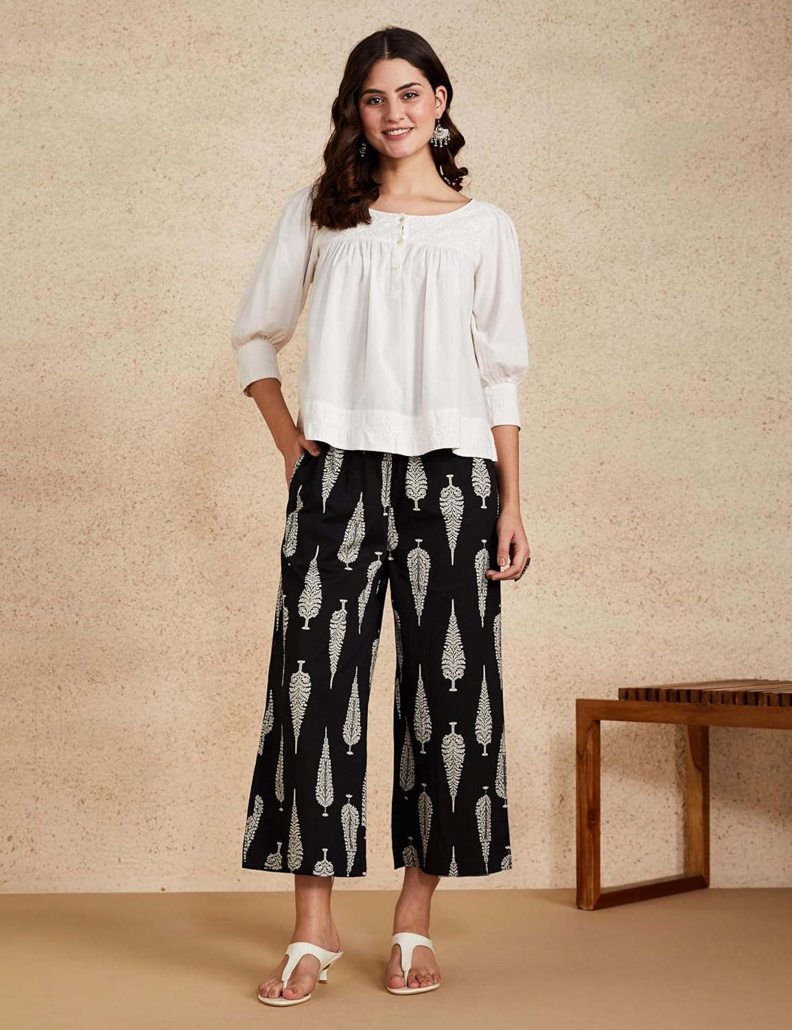 DESCRIPTION: Amazon Brand – Myx offers high-quality Indian wear for women, blending global trends with traditional crafts. These timeless, versatile palazzos come in a range of colours and prints making them a wardrobe essential.