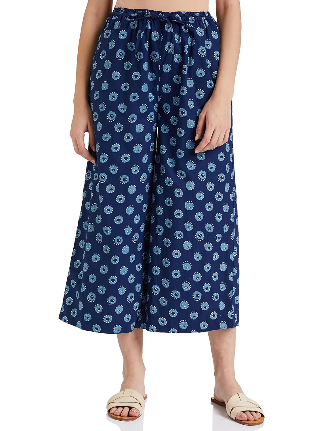 Stay comfortable with myx cotton palazzos and discover a whole new personal style. These palazzos are designed in a variety of solid colours and prints to match all your wardrobe essentials. Crafted with the utmost care to suit your desired fit and comfort, this palazzo is made in natural, soft fabric that falls well and is comfortable to the skin. Style it with a hip-length top or Long kurti and a pair of sandals. Perfect for casual and work wear.