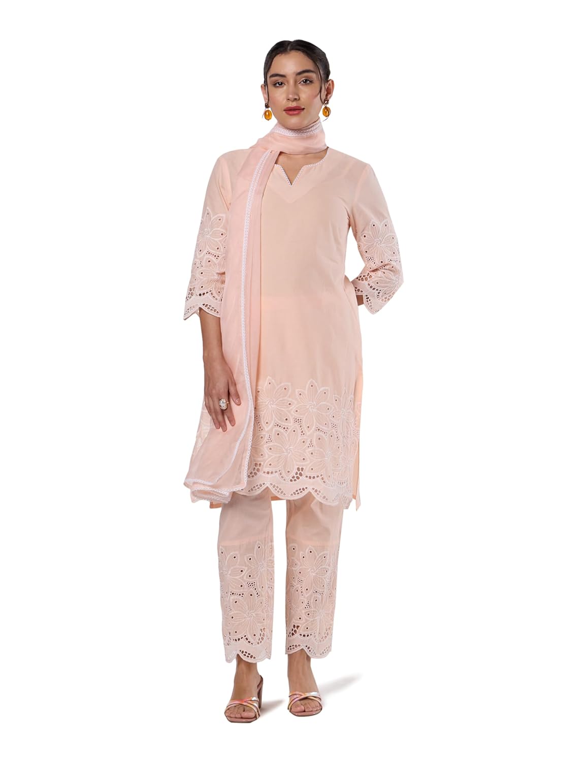 Generic Name : Pure Cotton Embroidered Kurta Set with Dupatta (Available in Plus Sizes)