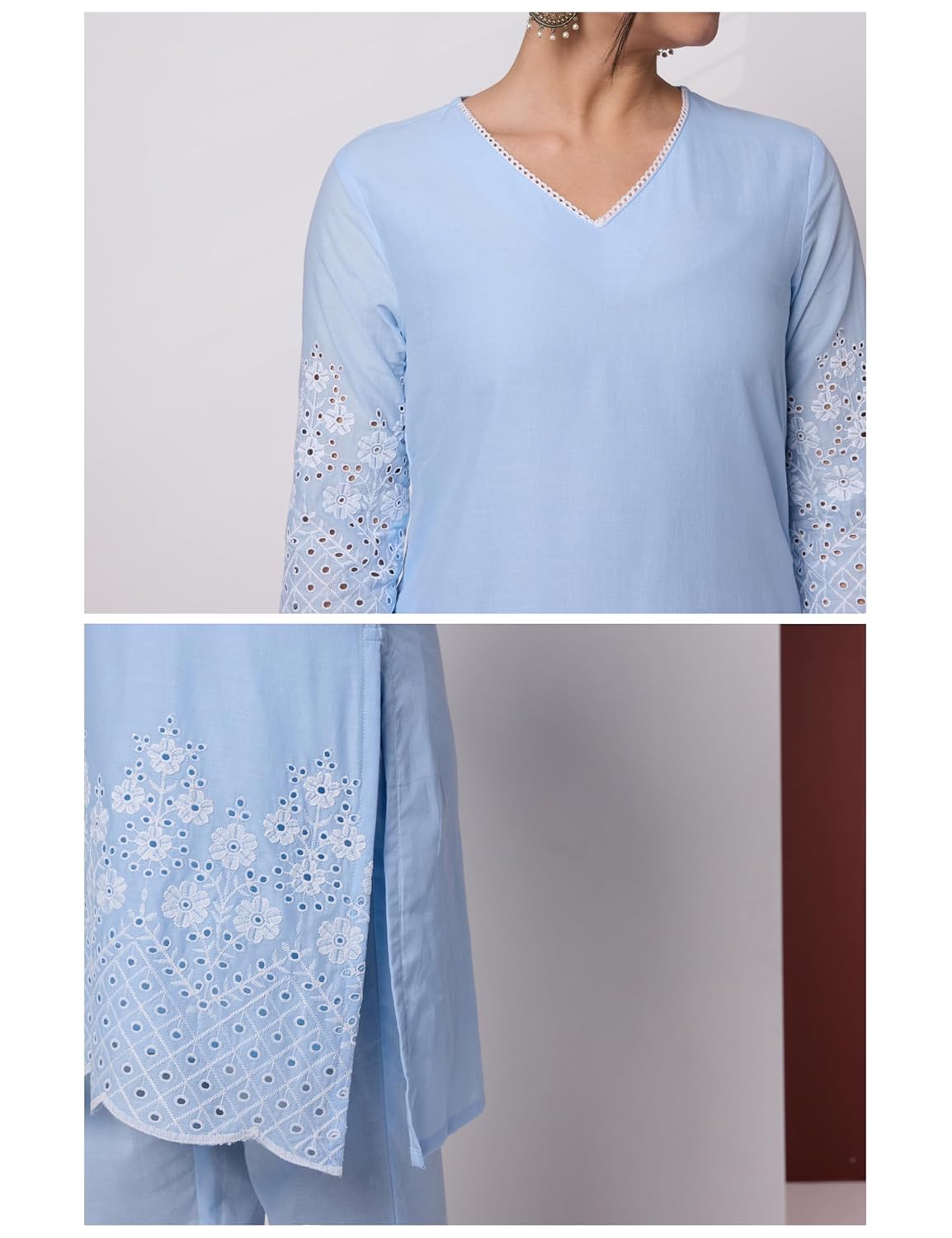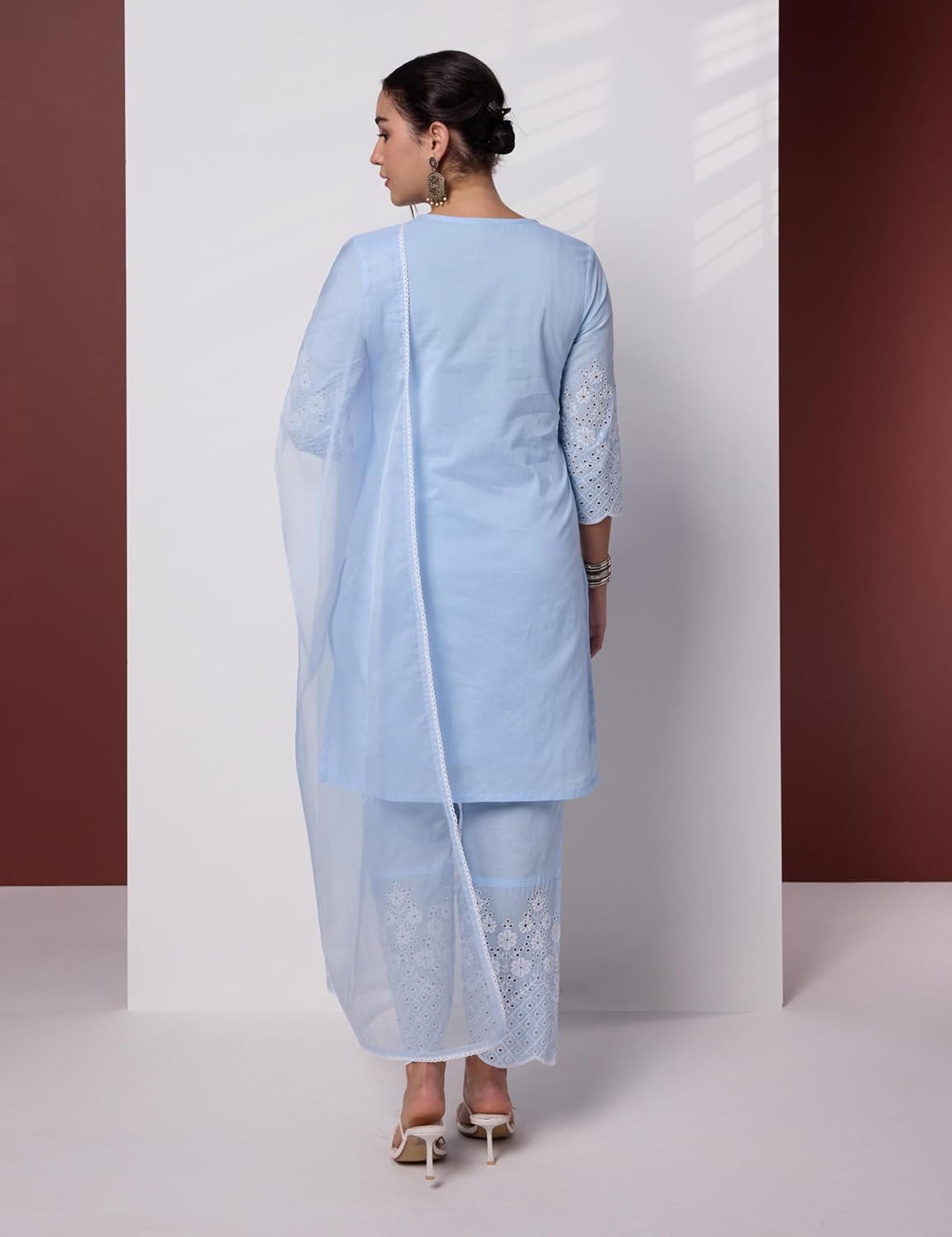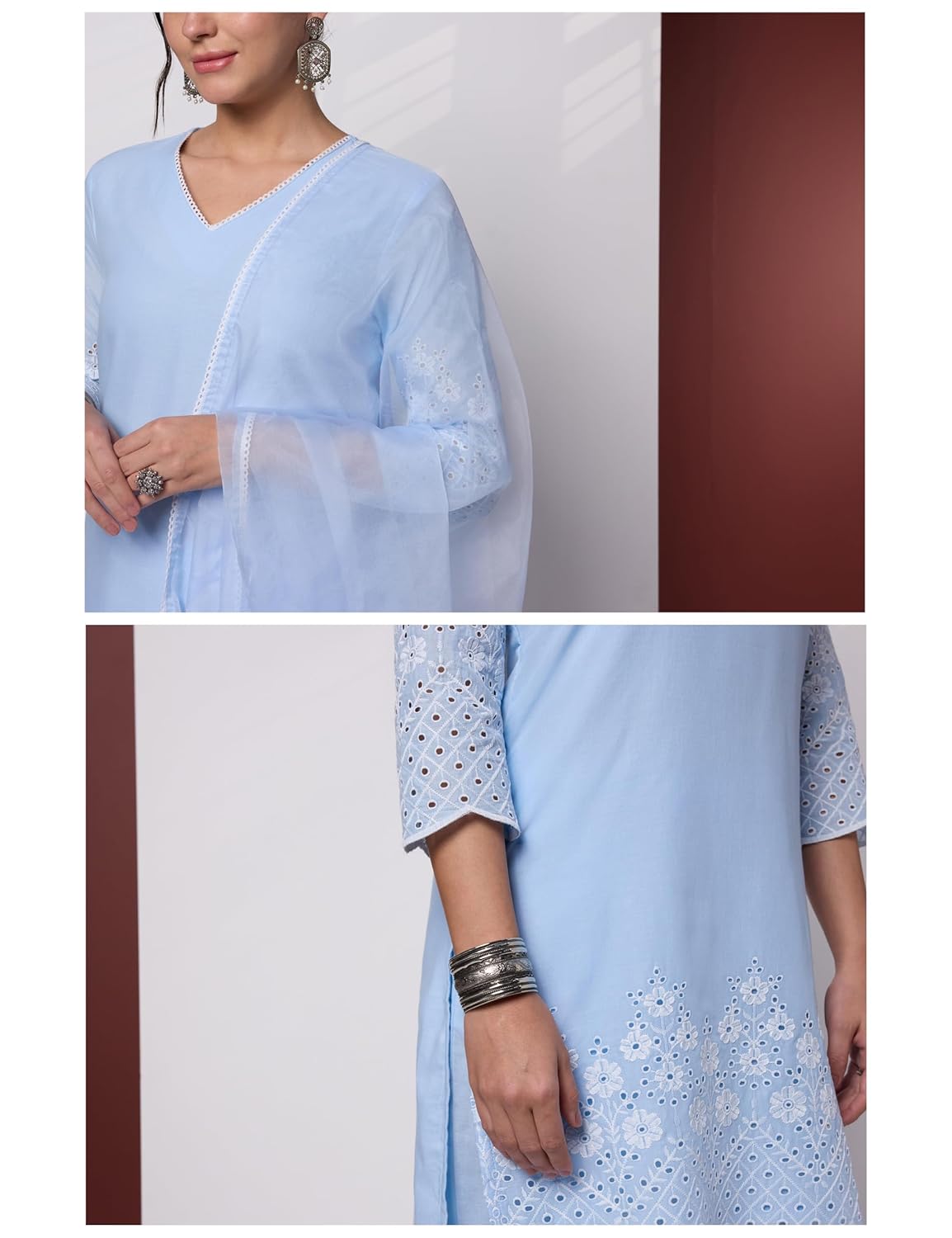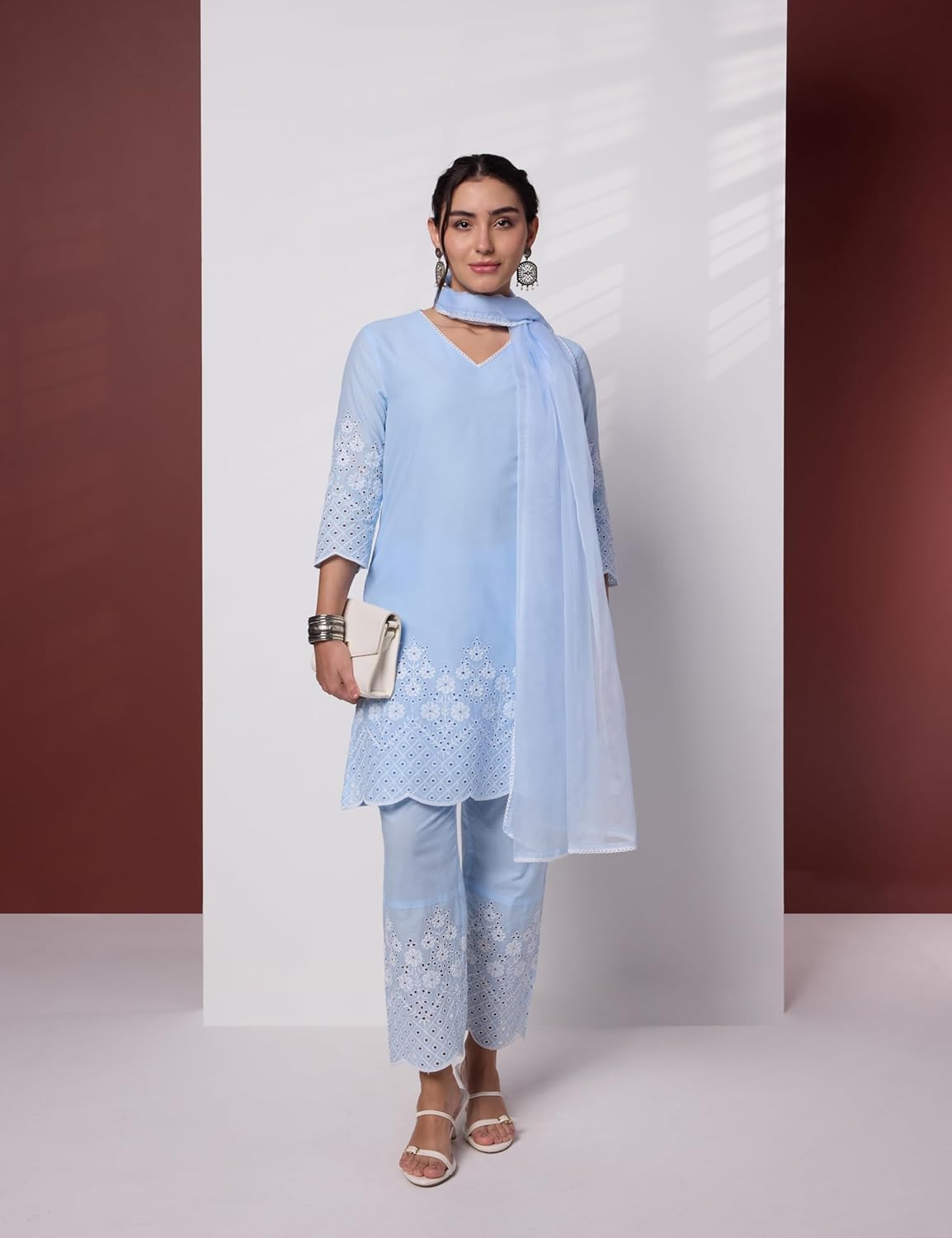 Generic Name : Pure Cotton Schiffli Embroidered Kurta Set with Dupatta (Available in Plus Sizes)