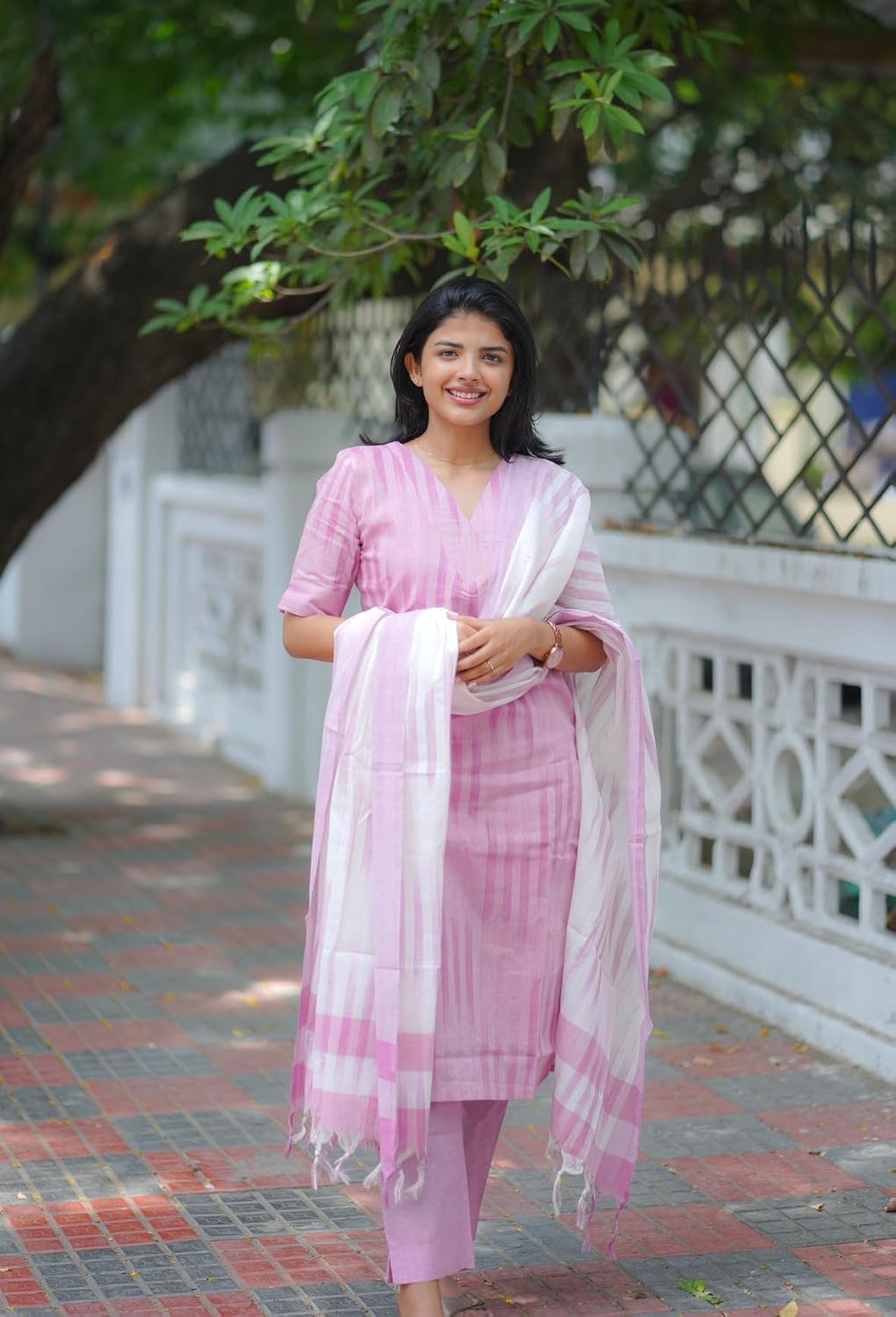 Bring timeless elegance to your ethnic wardrobe with Anni Designer’s Cotton Kurta Pant Dupatta Set, featuring a stunning Ikkat print in a soft light pink color. Crafted from pure breathable cotton, this 3-piece outfit includes a kurta, straight pants, and a matching dupatta—offering the perfect balance of comfort and style. Designed for festivals, family gatherings, and party wear, this suit set is ideal for women who love traditional fashion with a modern twist. Whether you’re looking for a cotton kurta set for woman, a kurti set with dupatta, or festival ethnic wear, this ensemble is tailored to meet your festive fashion needs. Style it with oxidized jewelry and ethnic footwear for a complete celebration-ready look.