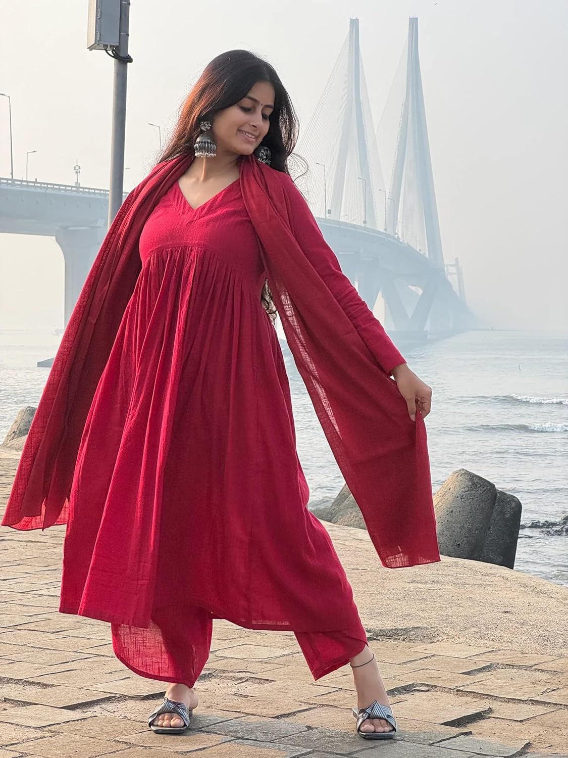I recently purchased the ANNI DESIGNER Women’s Rayon Viscose A-Line Solid Kurta with Palazzo & Dupatta, and I’m thoroughly impressed! The fabric feels soft and breathable — perfect for both casual and festive wear. The A-line cut gives a flattering look, and the palazzo adds a modern, flowy touch.The stitching is neat, and the dupatta completes the outfit beautifully. I wore it for a family function and got so many compliments. Totally worth the price — stylish, comfortable, and classy!Highly recommended for anyone looking for a budget-friendly yet elegant ethnic outfit.