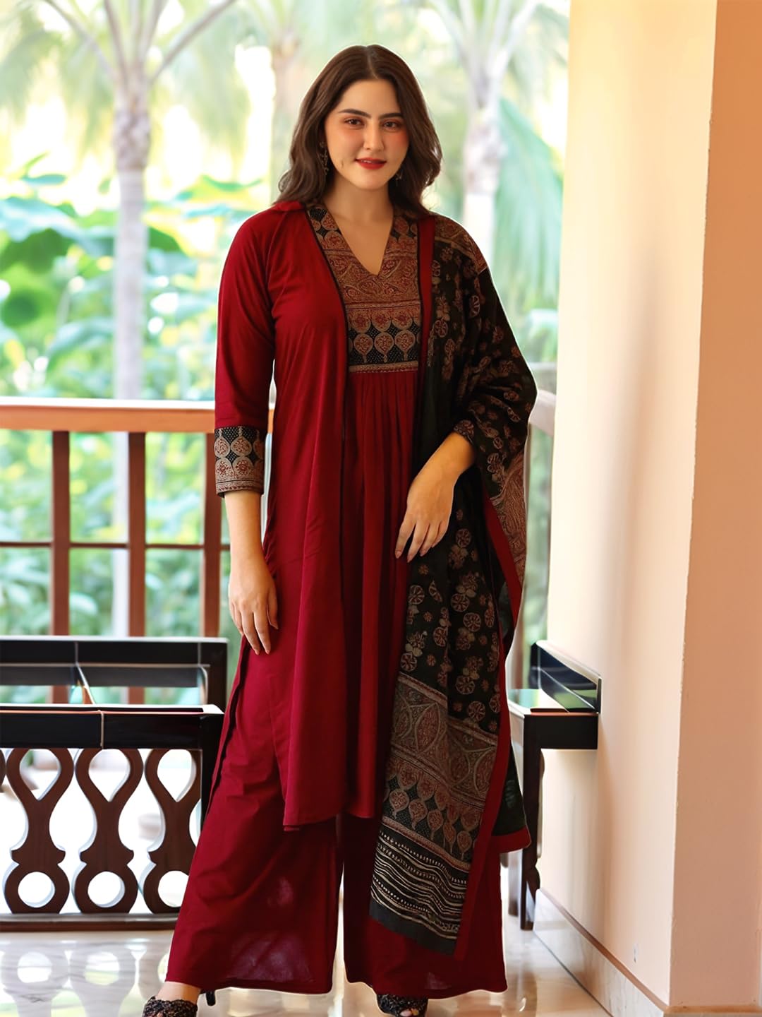 Please don’t buy, fabric is too transparent, and very low in quality, stitching quality is too bad bottom was torn after one wash, most importantly style and neck yoke not same as shown in the picture ( in the product picture it looks like gamthi style cotton & maroon in color but it’s red,print of yoke is not up to mark