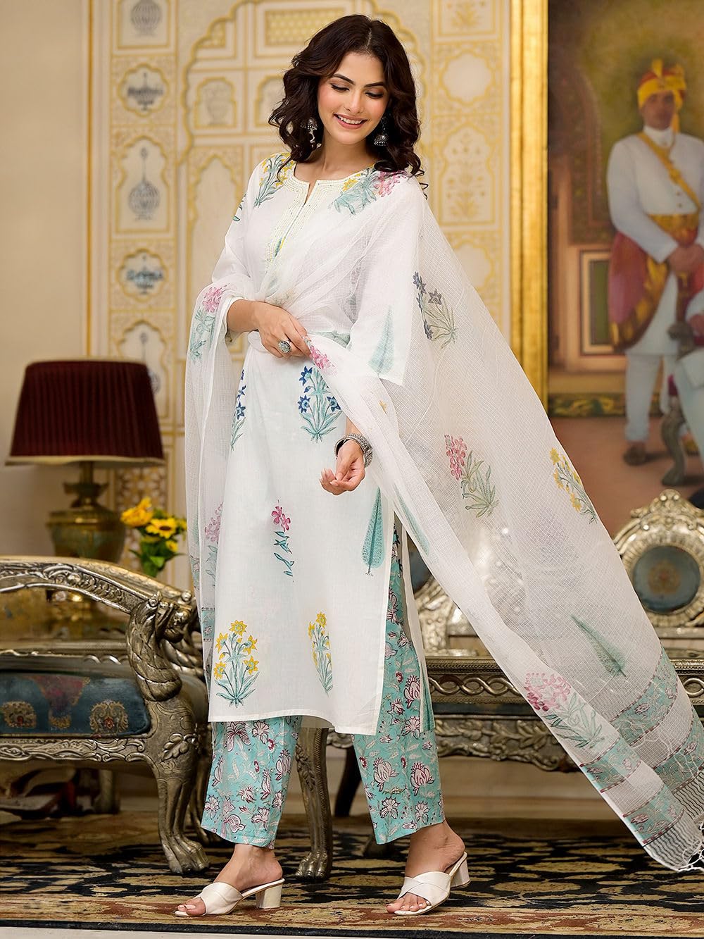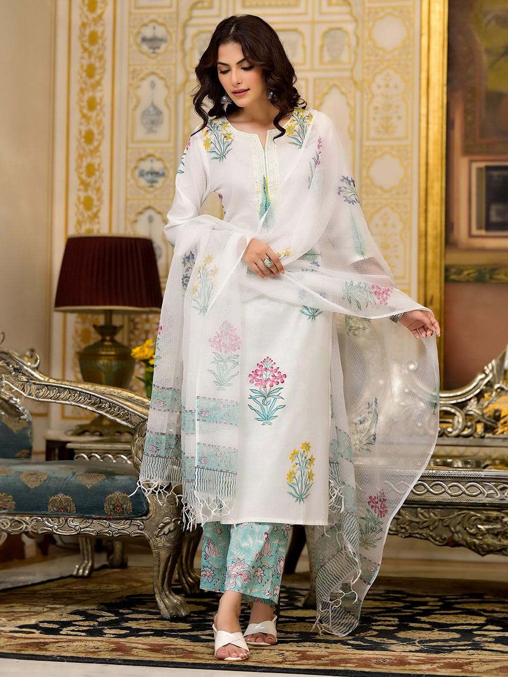 I absolutely loved this viscose Printed Kurta Set! The fabric feels so soft and comfortable on the skin, perfect for wearing all day. The white color with subtle block prints looks very elegant and classy. The stitching and finishing are neat, and the fit is true.