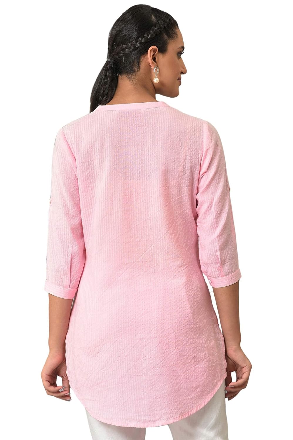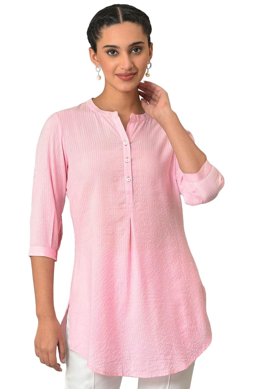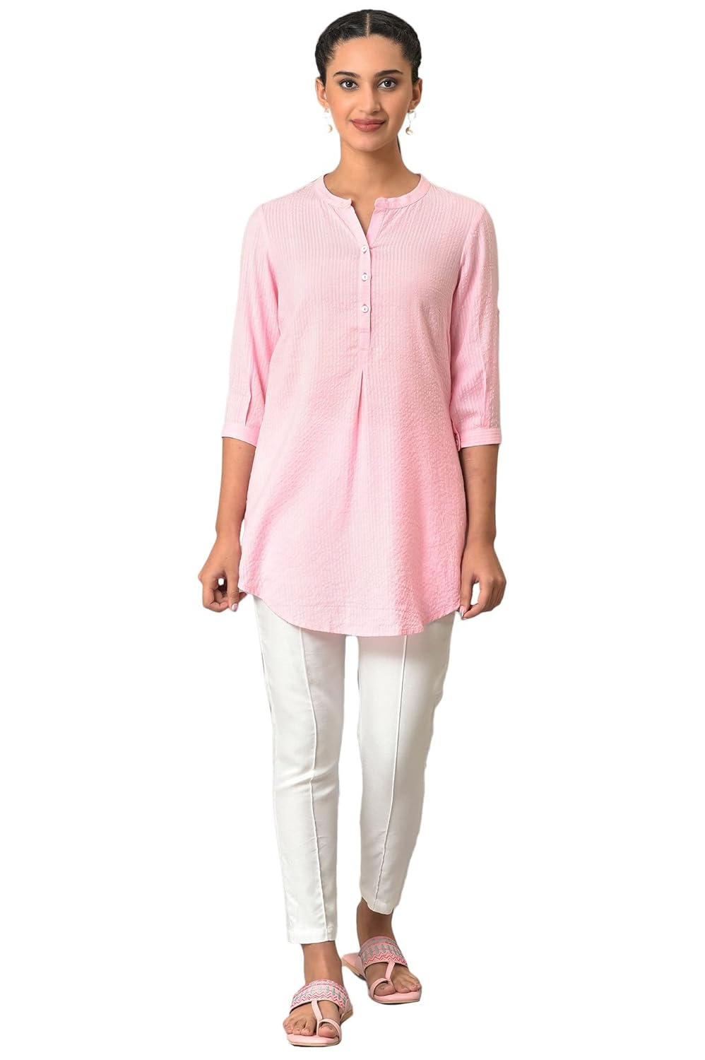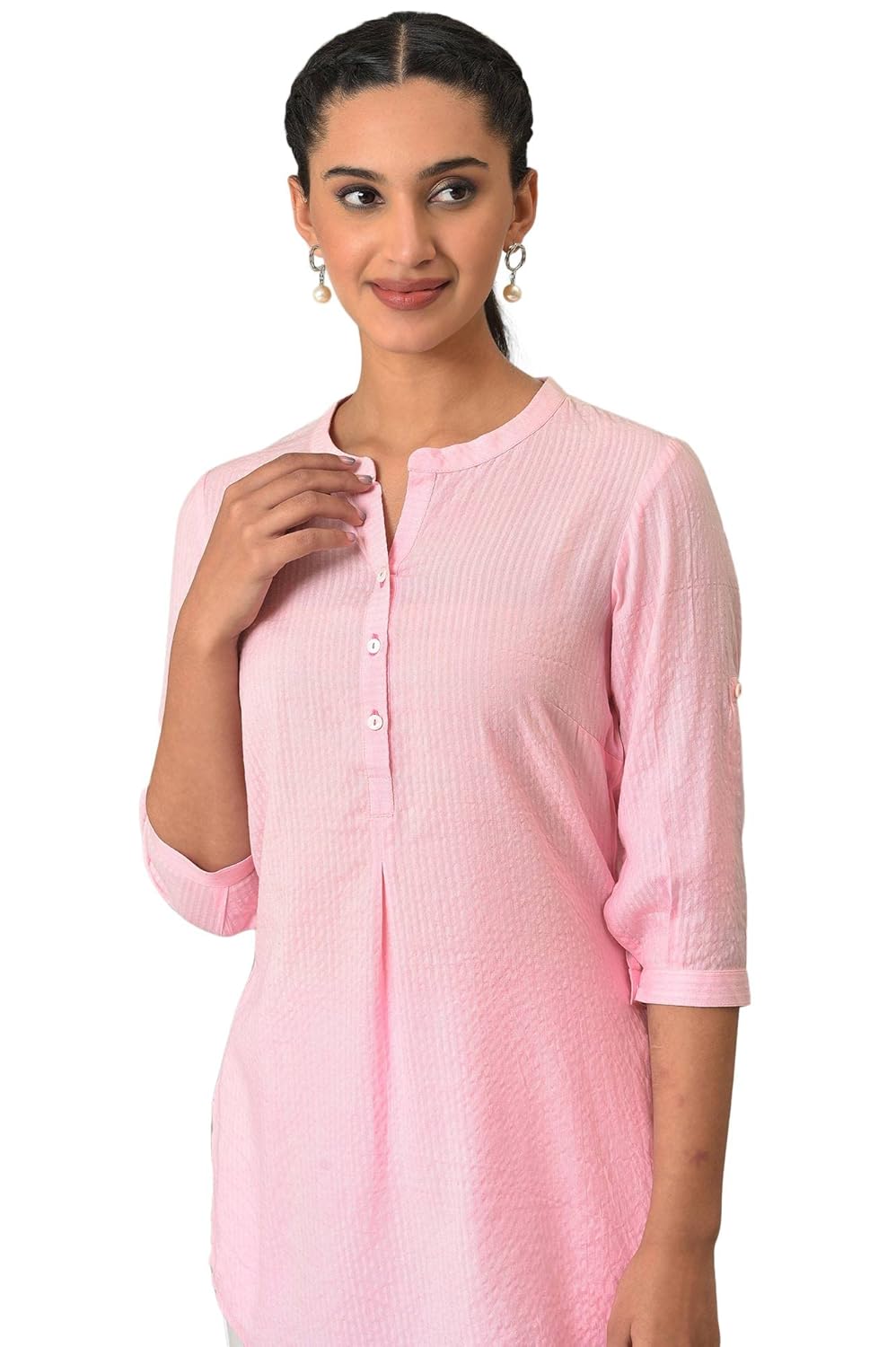 Generic Name : Pink Sheer Sucker Mandarin Collar Kurti