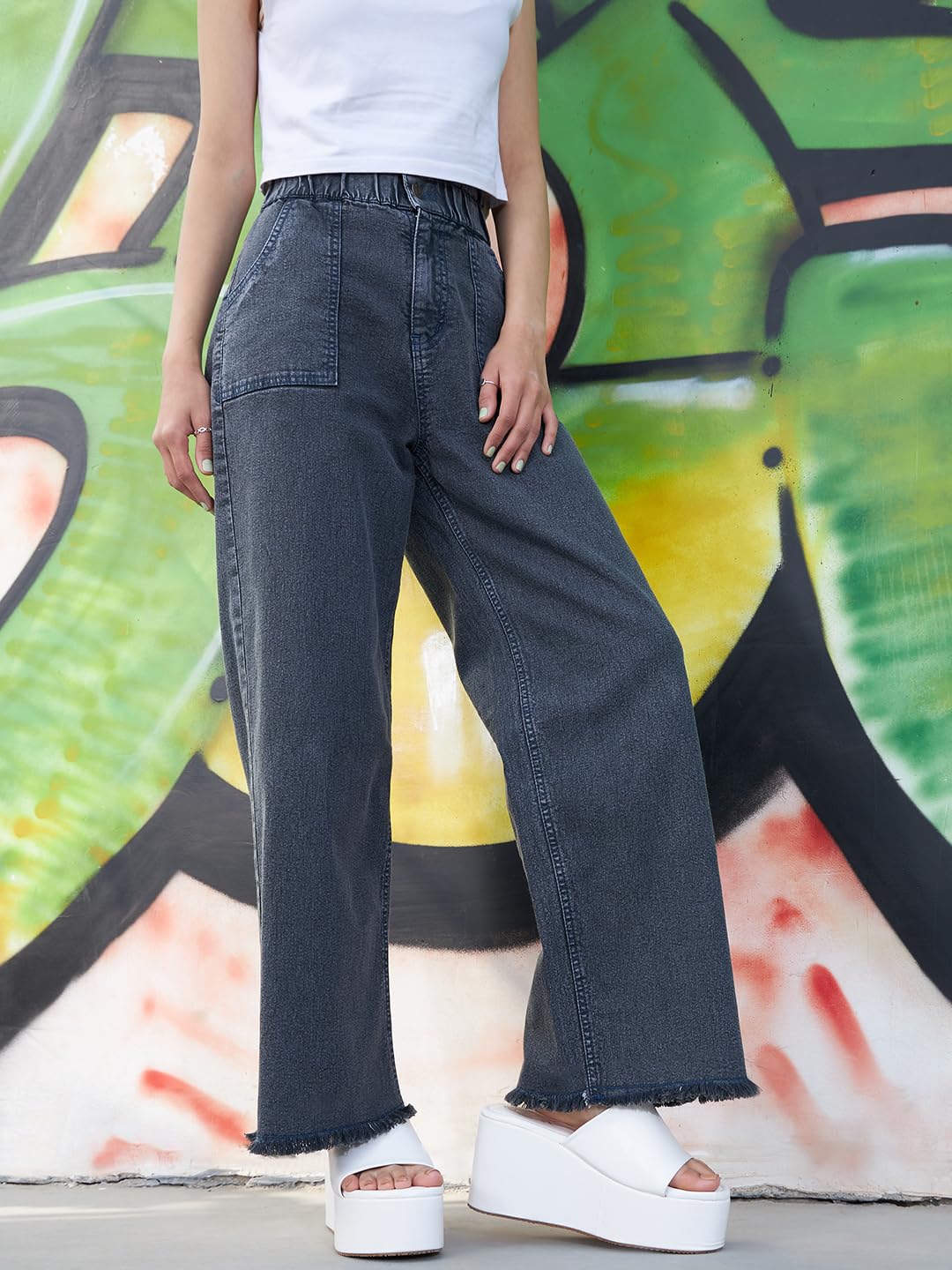 Be the first to review “Black Acid Wash Paper Bag Straight Jeans”