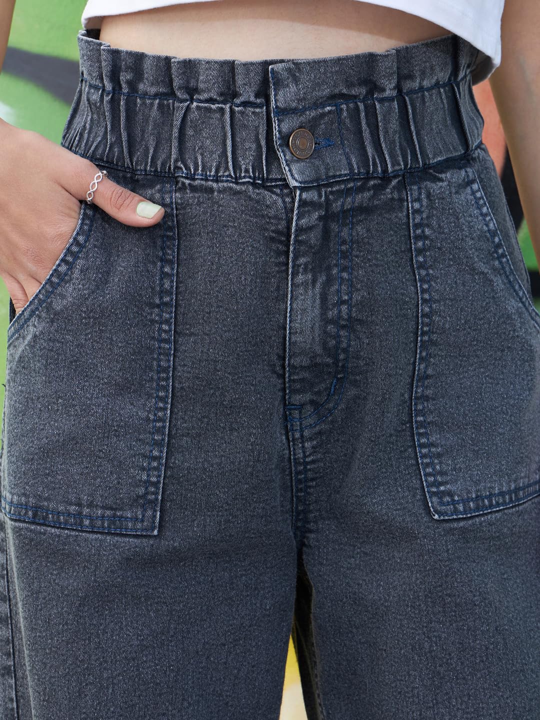 #Black #Acid #Wash #Paper #Bag #Straight #Jeans,
