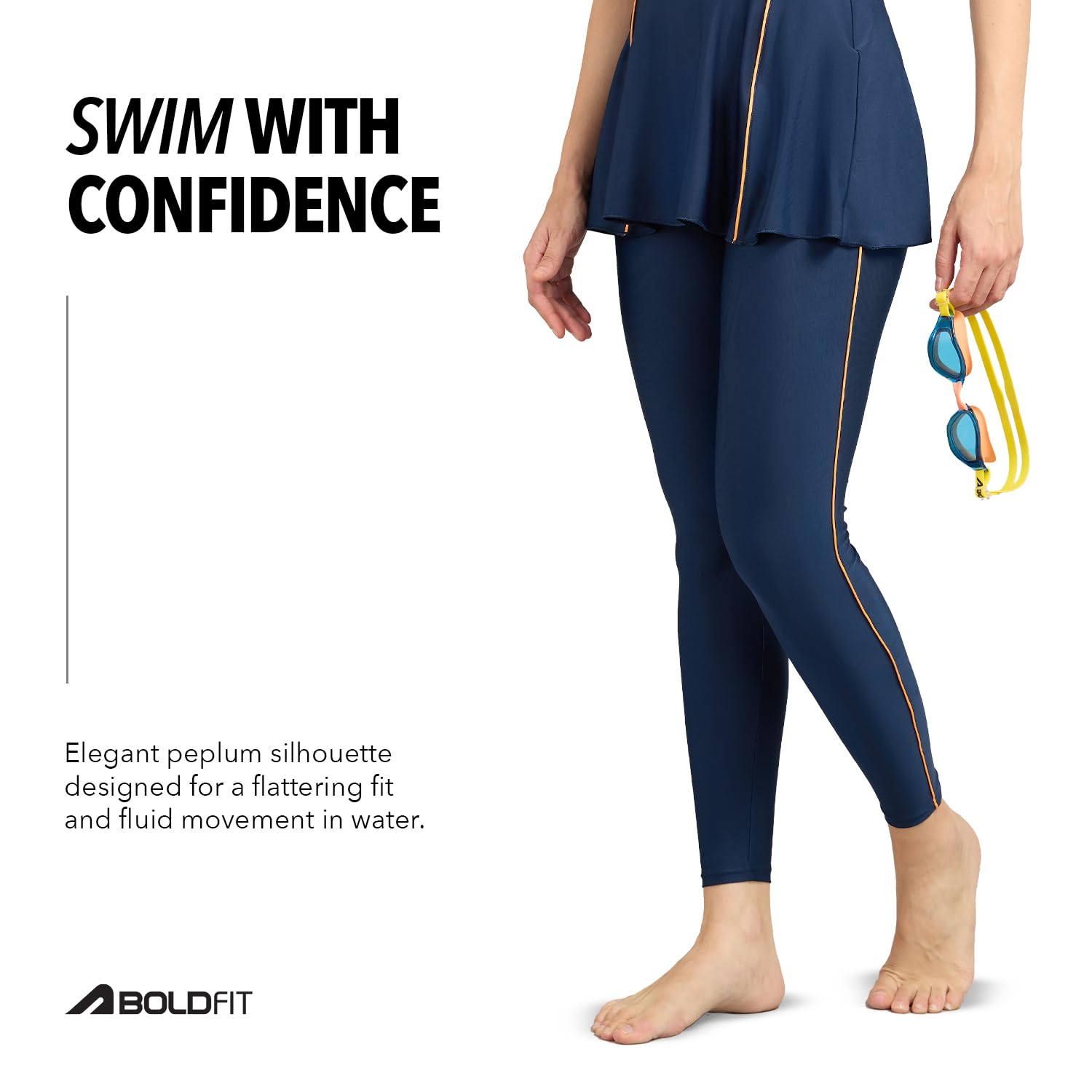 FLATTERING PEPLUM DESIGN FOR A STYLISH SWIM LOOK: The Boldfit Women’s Swim Peplum Co-ord features a chic, modern peplum silhouette that enhances your swimwear style while ensuring a comfortable fit. The half-sleeve design provides additional coverage and protection, while the contrast fabric details add a stylish touch. Whether youâ€re at a pool party, on a beach getaway, or engaging in water sports, this swimwear for women keeps you looking fashionable while offering unrestricted movement.