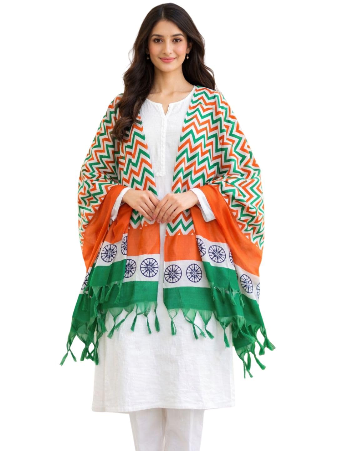 Celebrate the spirit of freedom with this multicolour dupatta. Drape it up like a dupatta with white kurta or just tag it along like a stole with a top.
