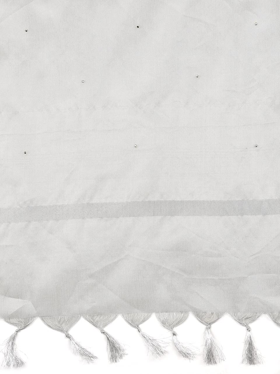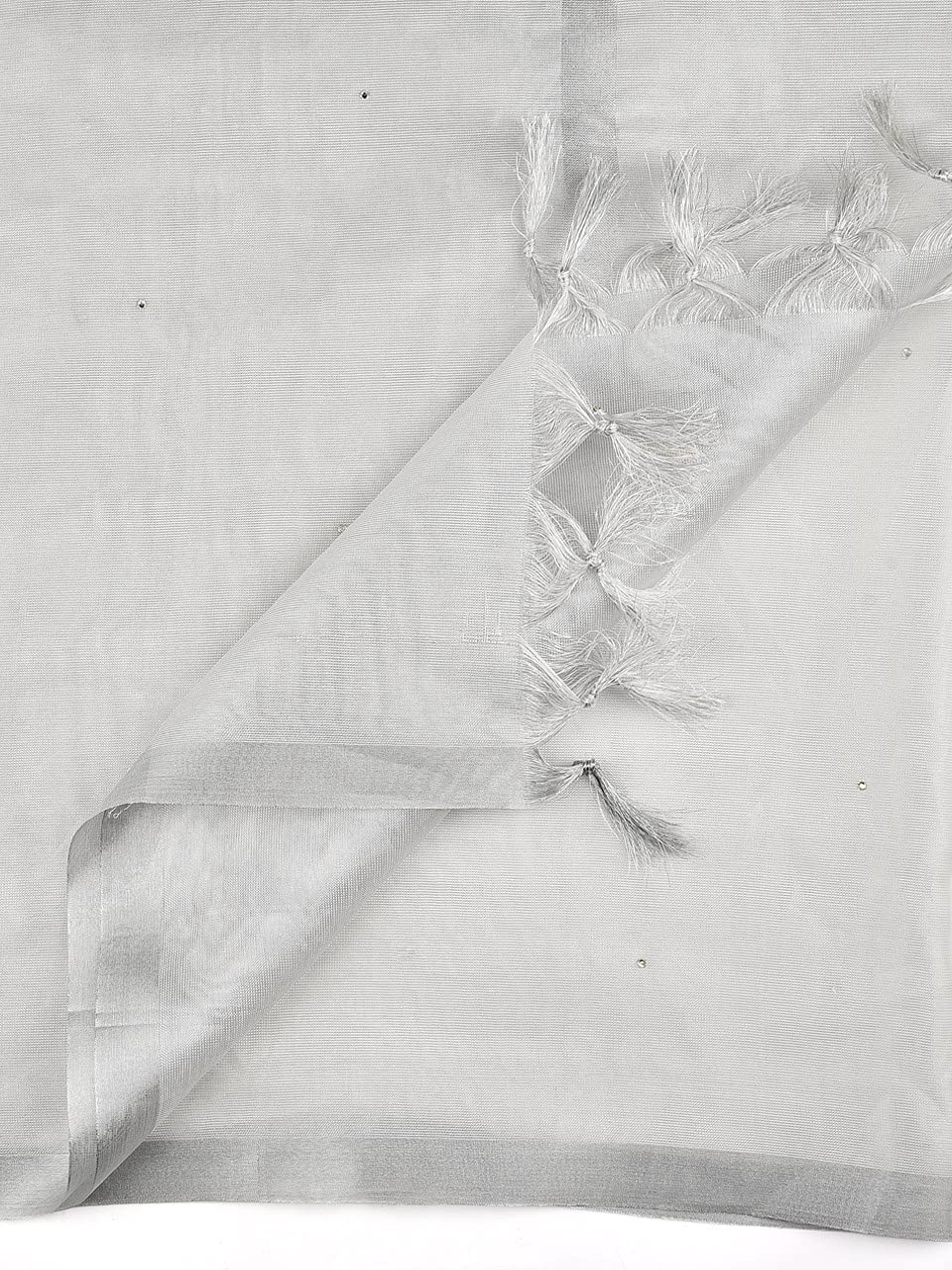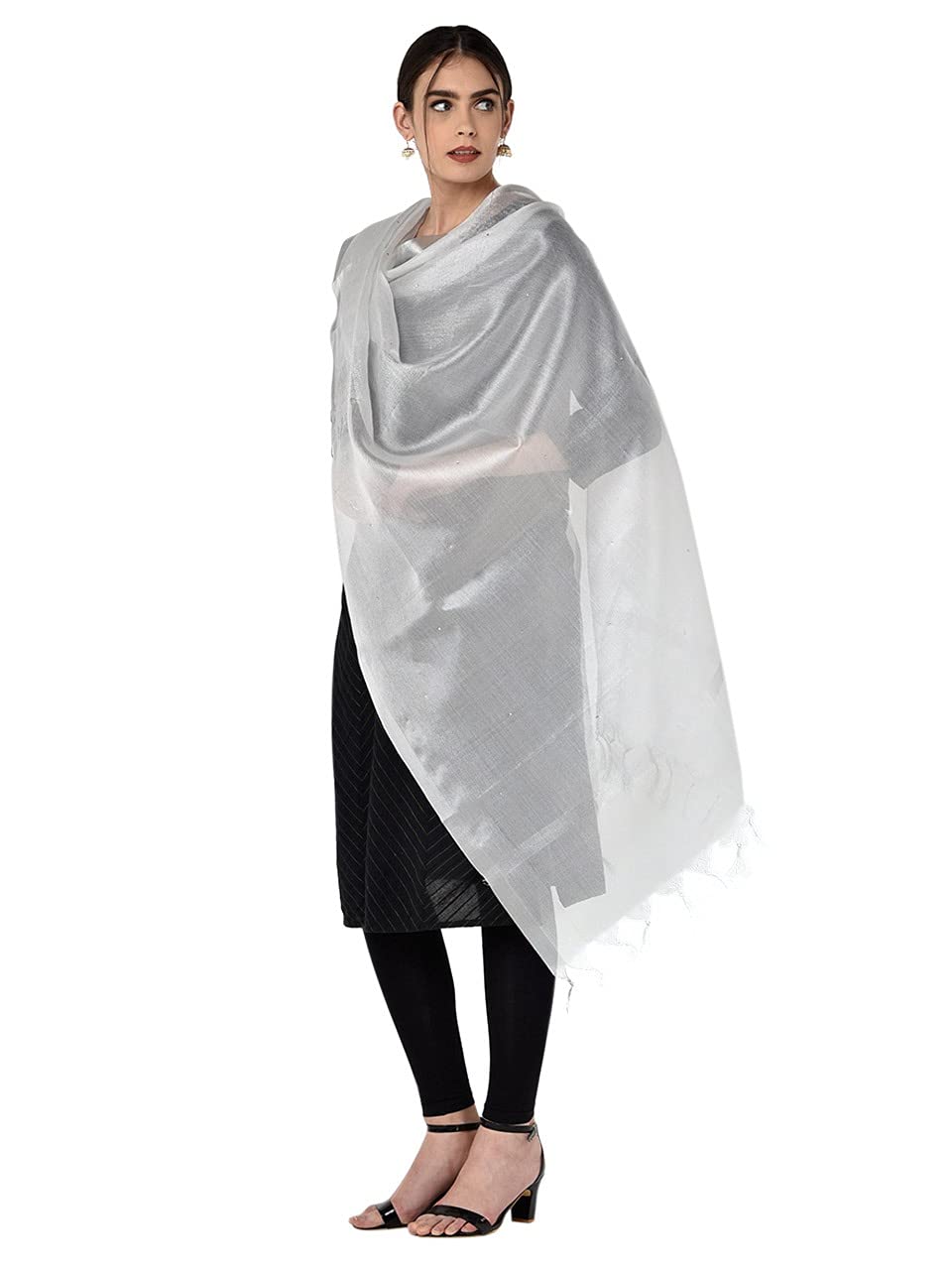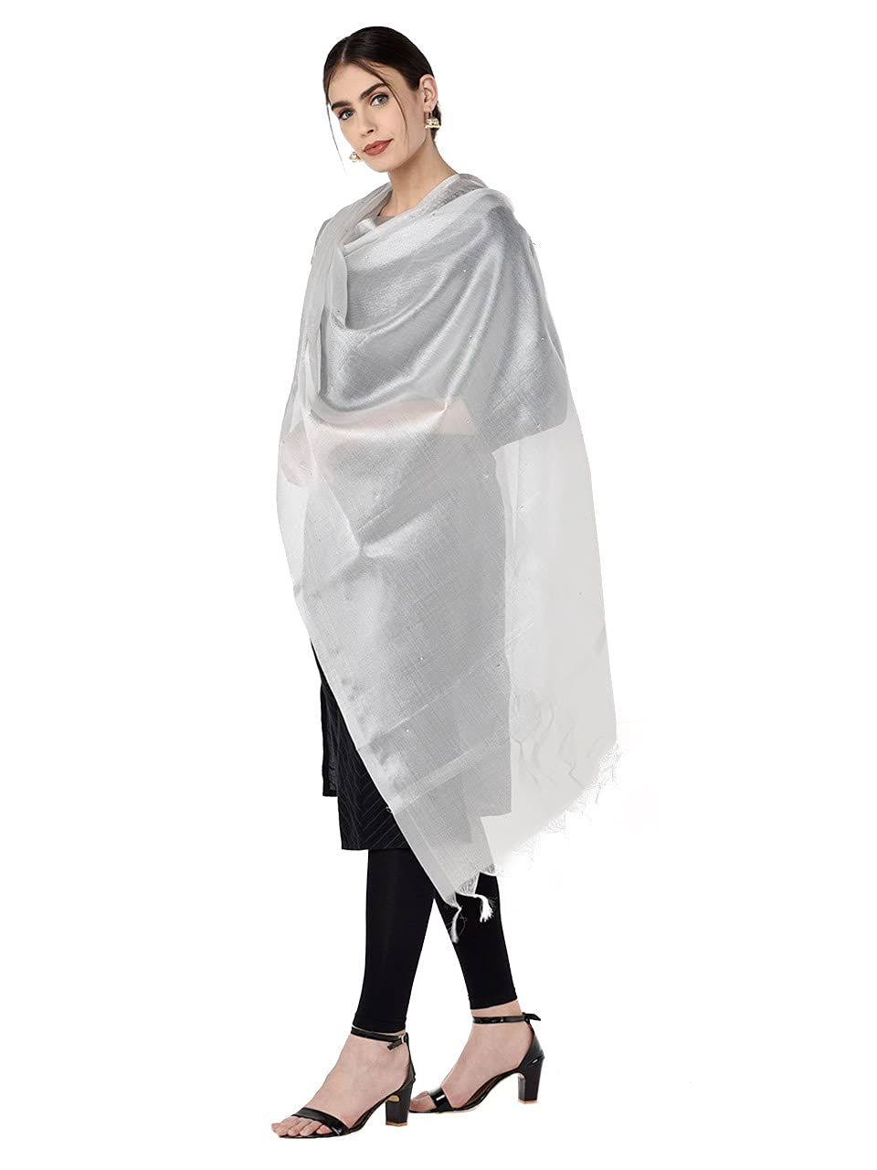 A dupatta that attracts one instantly with its incredibly sophiticated look! This rich blended silk dupatta embellished with delicate stones is a perfect way to enhance the look of your outfit