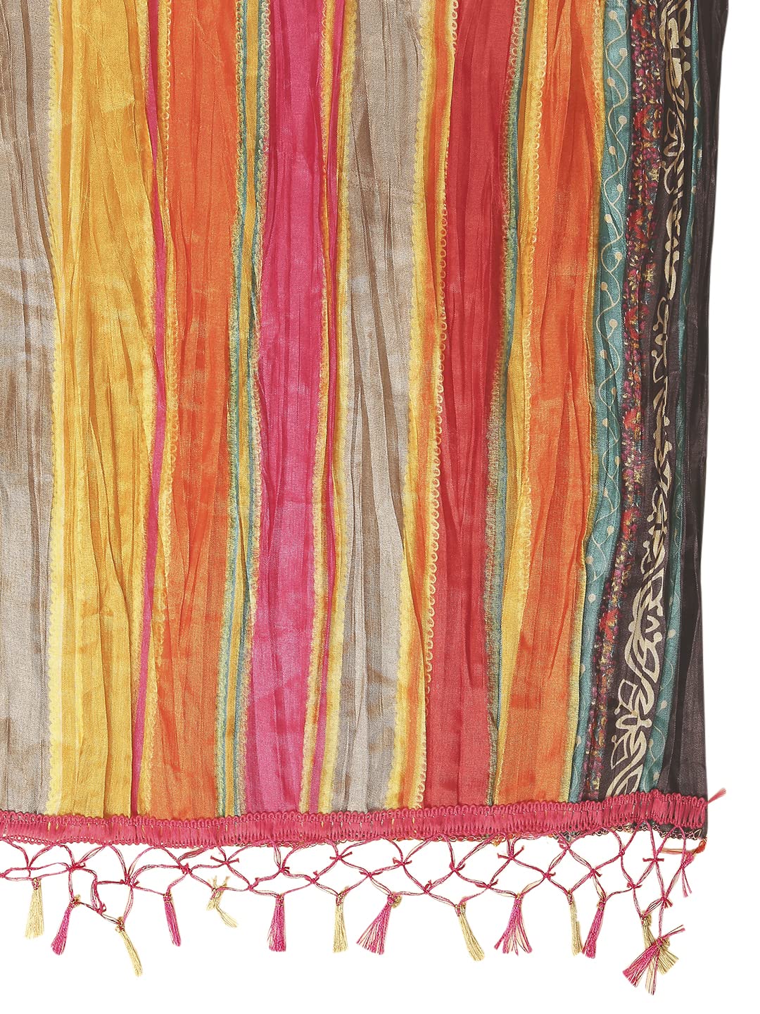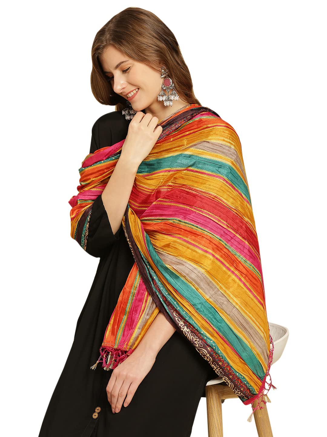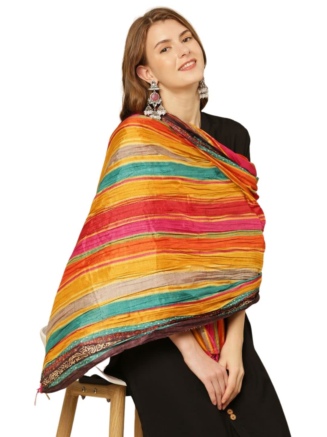 This dupatta is designed with stunning striped print. The beautiful colour combination is artfully curated to make the dupatta look lively and elegant.