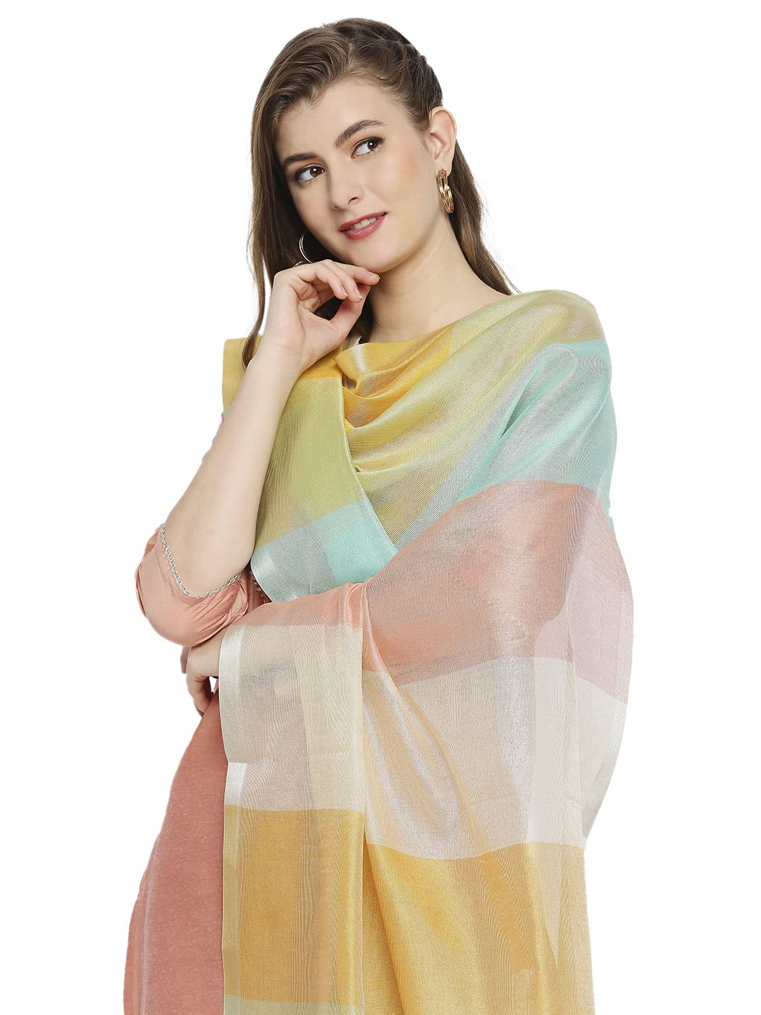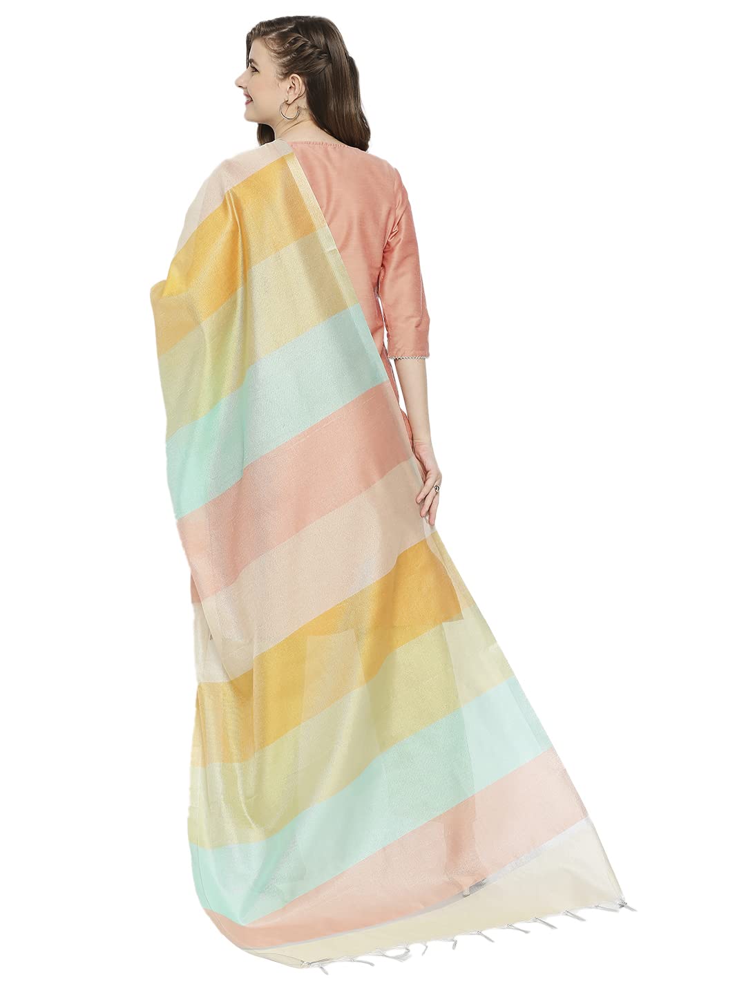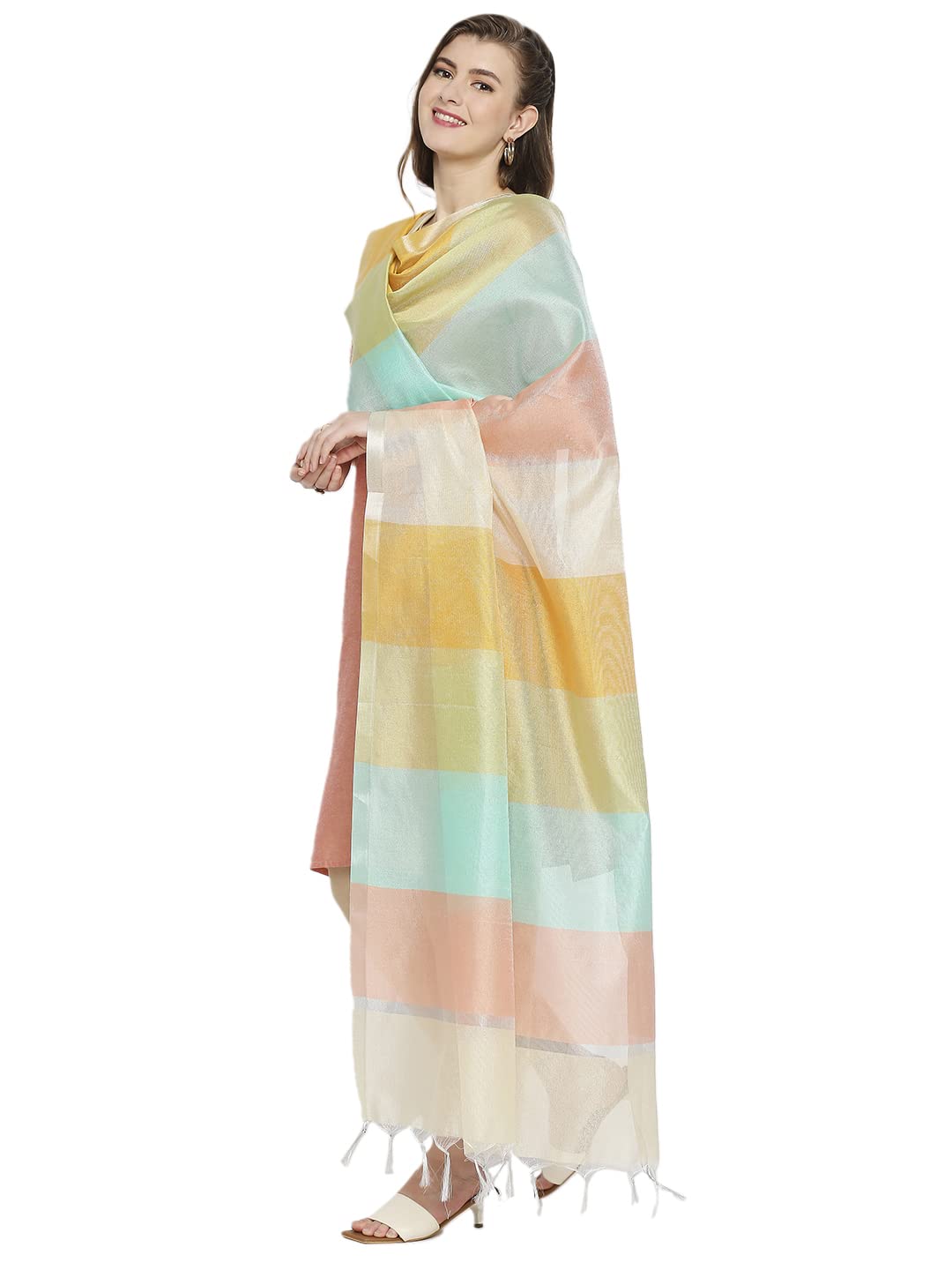 SPN-JGSP Women's Multicoloured Striped Silk Blend DupattaSPN-JGSP Women's Multicoloured Striped Silk Blend Dupatta