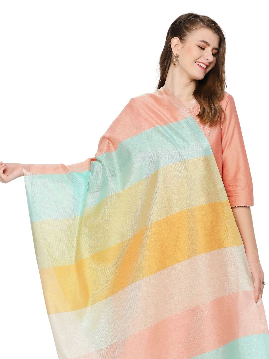 SPN-JGSP DUPATTA BAZAAR Women's Striped Silk Blend Dupatta (DB3297_Multicoloured_Free)SPN-JGSP DUPATTA BAZAAR Women's Striped Silk Blend Dupatta (DB3297_Multicoloured_Free)