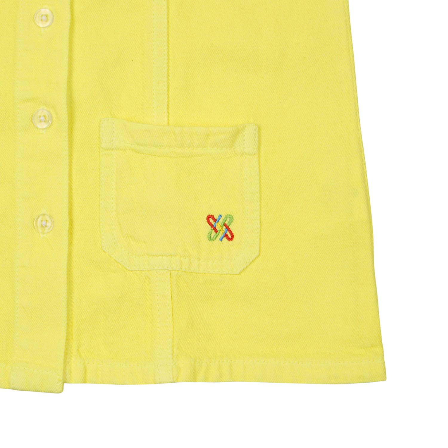 Girls’ Denim Shirt Dress with Front Pockets | Light Yellow Casual A-Line Full Button Down Dress | Soft Cotton Jeans Stretch Fabric | Kids Summer Western Outfit