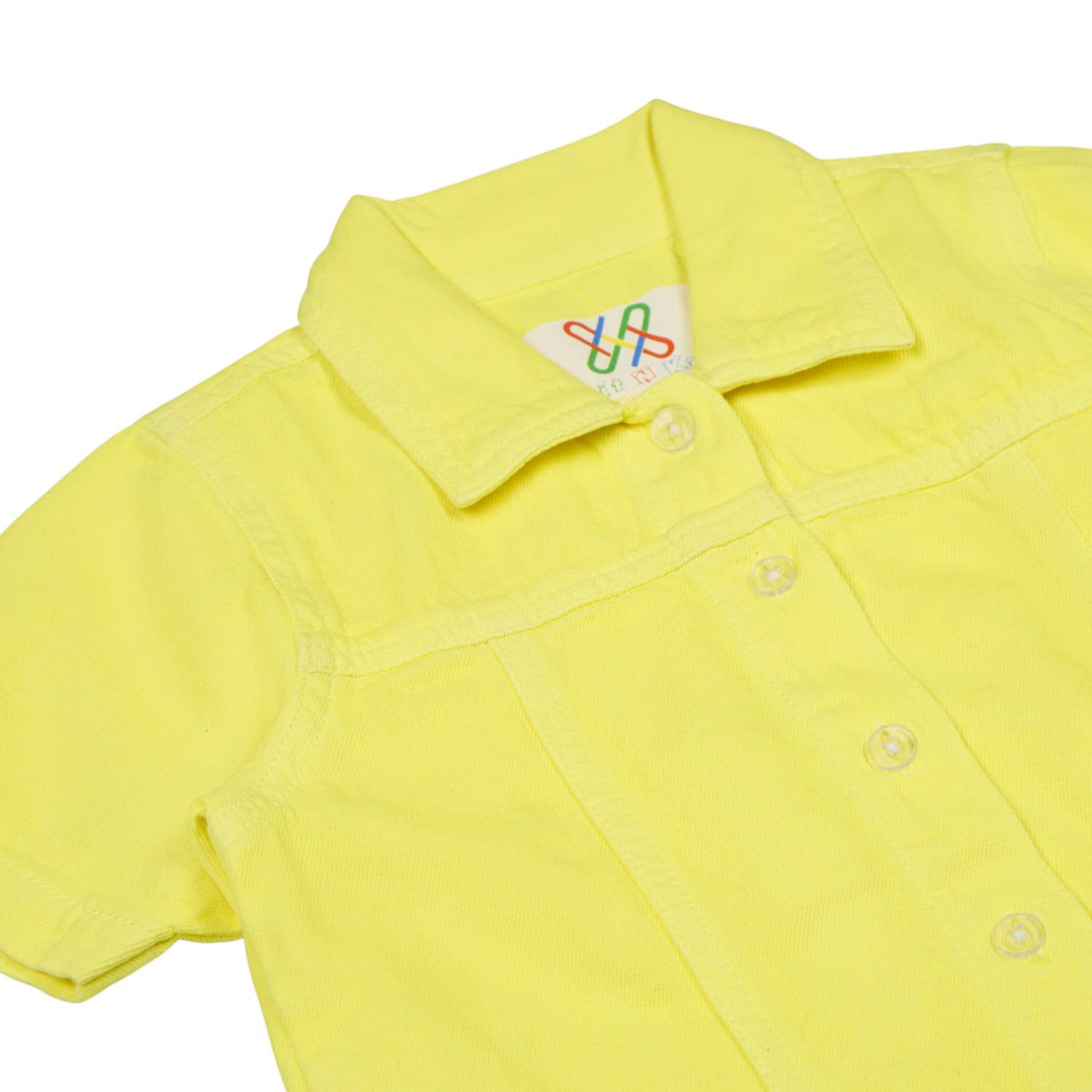 Let your little fashionista shine in this adorable light Yellow denim shirt dress from Knit N Knot. Designed for both comfort and style, this A-line dress features soft, breathable cotton-blend denim that’s gentle on the skin and perfect for all-day wear. The front button-down closure makes it easy to slip on, while two cute front patch pockets add a practical and playful touch. Finished with subtle stitching and signature Knit N Knot branding, this dress is ideal for casual outings, summer playdates, festive occasions, and even birthday parties. Dress it up with sneakers or sandals for a complete trendy look!