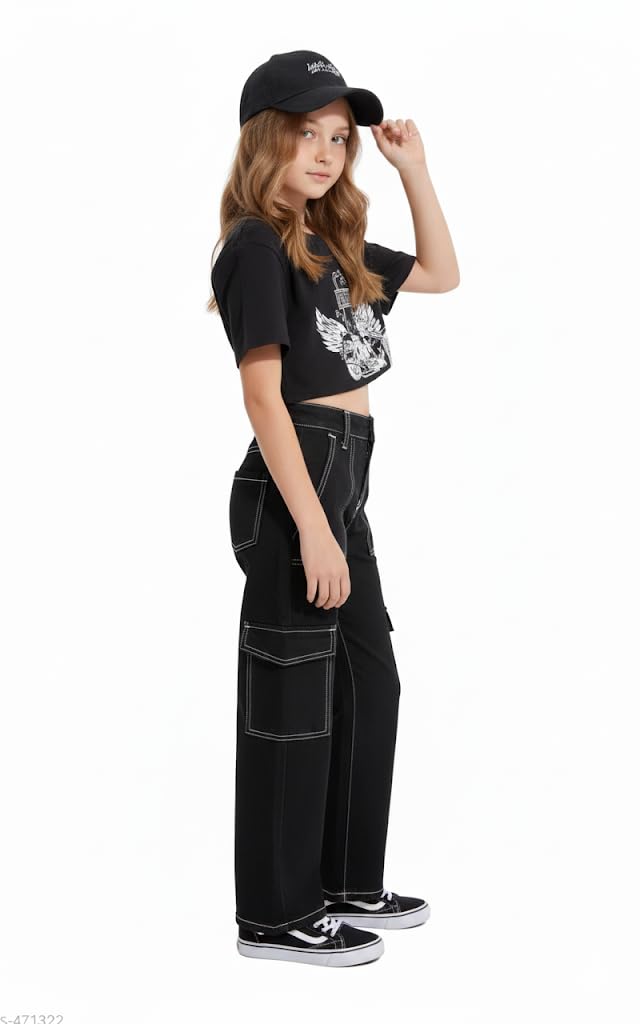 #Girls #Pocket #Black #Denim #Cargo #Jeans #Stylish #Black #Cargo #Pants #Girls #Teens #Comfortable #Trendy #Casual #Wear,