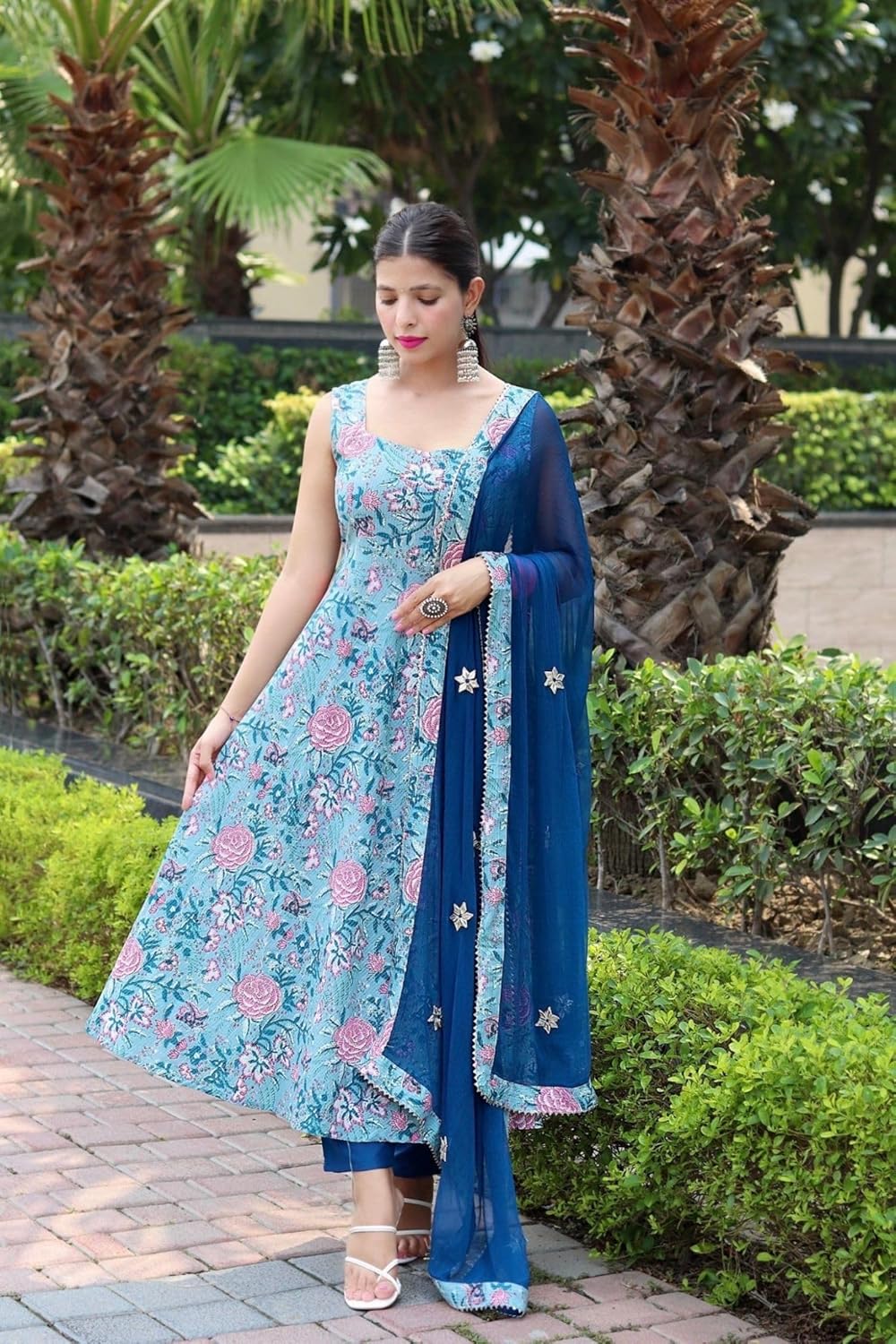 Included Components : Anarkali Printed Kurta with Pant & Dupatta