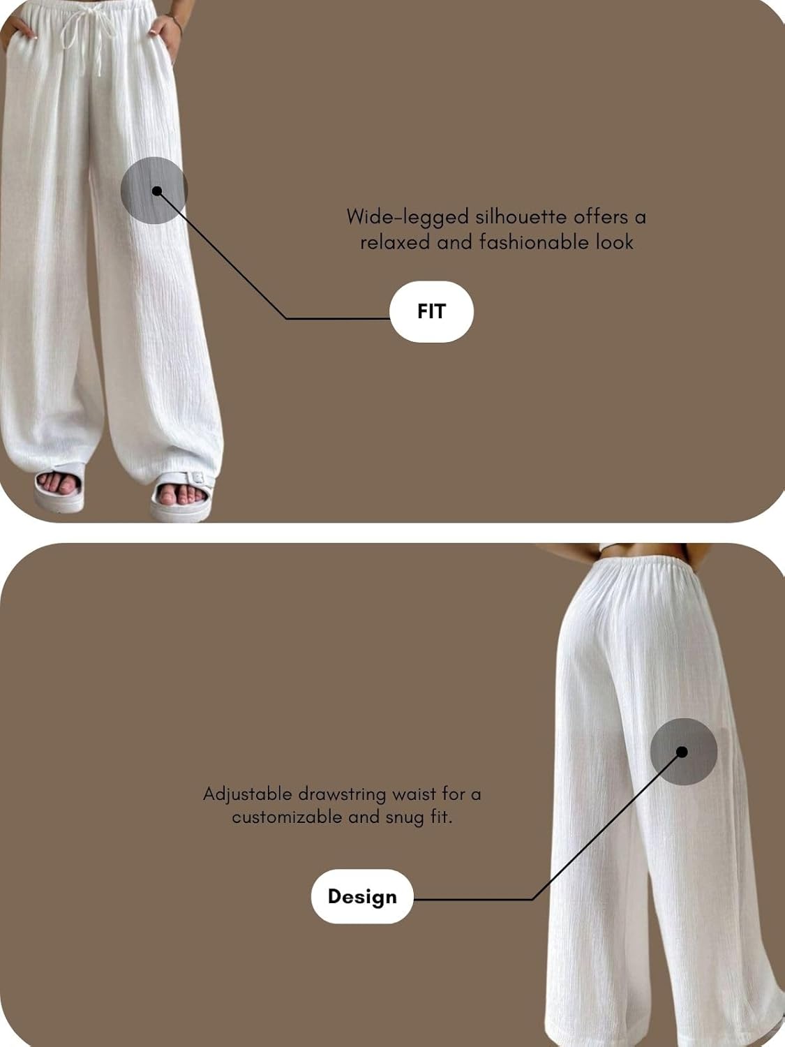 I was pleasantly surprised by the quality of these GRECIILOOKS high-rise trousers! The polycotton material feels breathable yet structured enough to hold its shape all day. The textured fabric gives it a premium, polished look that’s perfect for casual outings and formal settings.The fit is relaxed but flattering, especially around the waist thanks to the high-rise design and drawstring closure. It cinches perfectly without being too tight. I got the Dark Blue in 2XL and it fits true to size—definitely refer to the size chart before ordering!What I love most is the versatility—I’ve styled it with tucked-in shirts for work, crop tops for casual days, and even paired it with a blazer for a semi-formal look. Plus, it’s machine-washable and low-maintenance, which is a big win.For ₹549 (a massive 73% off!), it’s an unbeatable deal. Comfortable, trendy, and affordable—definitely recommend grabbing more colors while they’re in stock!