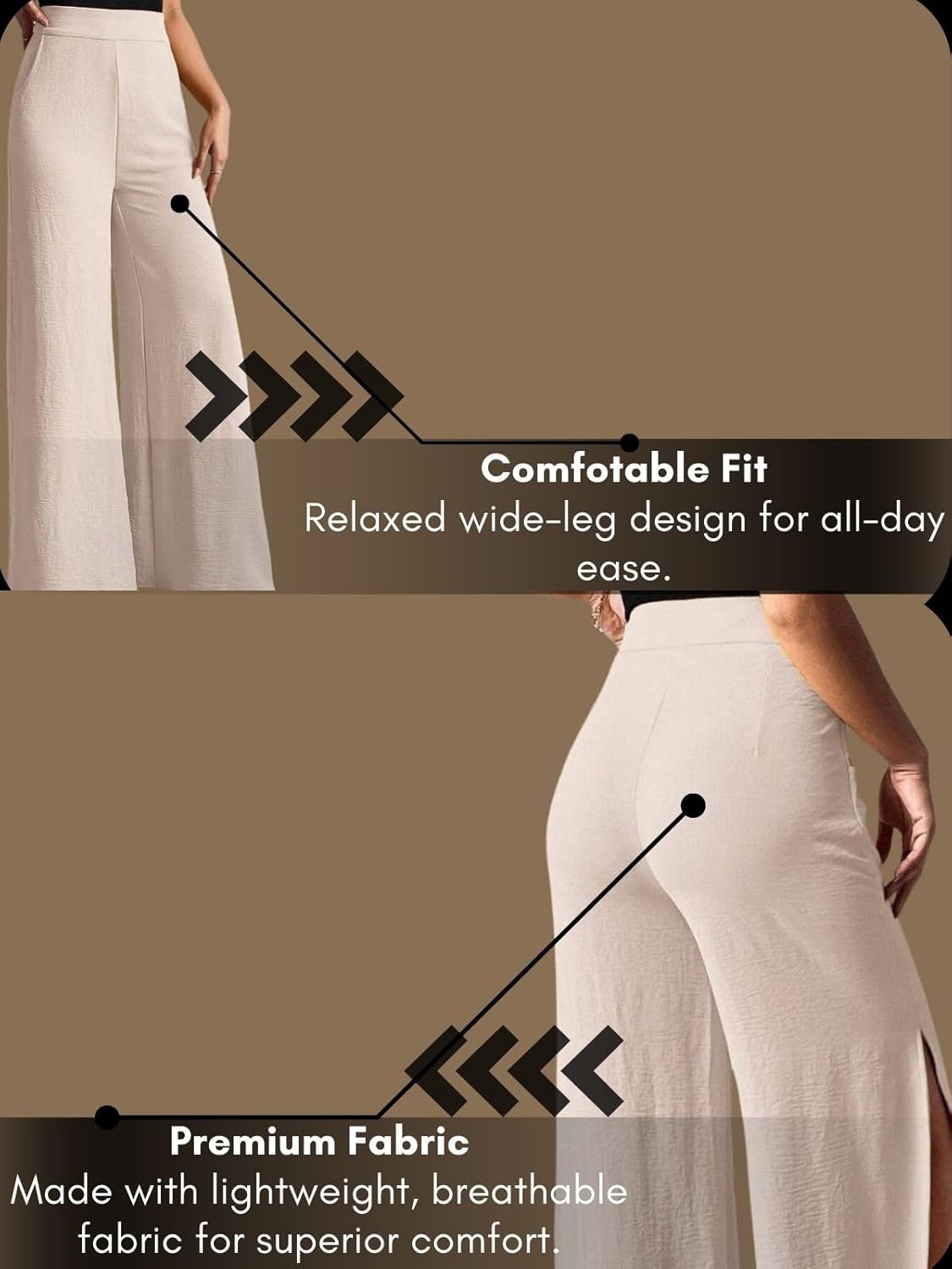 8 reviews for GRECIILOOKS Women’s High Waist Wide Leg Pants with Side Slit | Casual Summer Palazzo Pants | Stylish Trousers for Women | Travel Beach Wear Loose Fit Straight Pants | Flared Fusion Palazzos