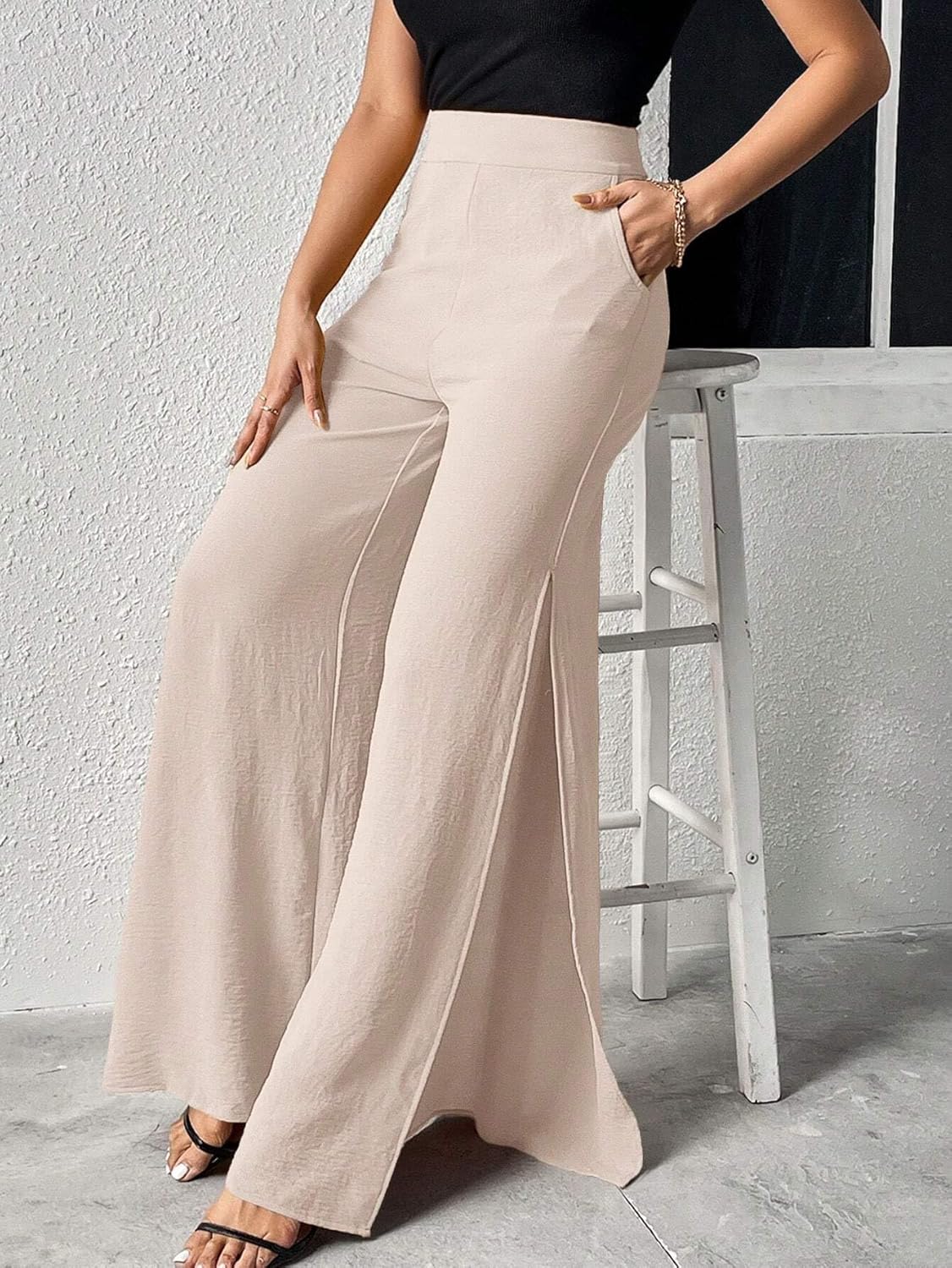 High-Waisted Poly Lycra Trousers with Side Slit – Slimming & Elegant Fit high-waisted trousers  poly lycra pants  side slit trousers  slimming beige pantshigh-waisted trousers  poly lycra pants  side slit trousers  slimming beige pants