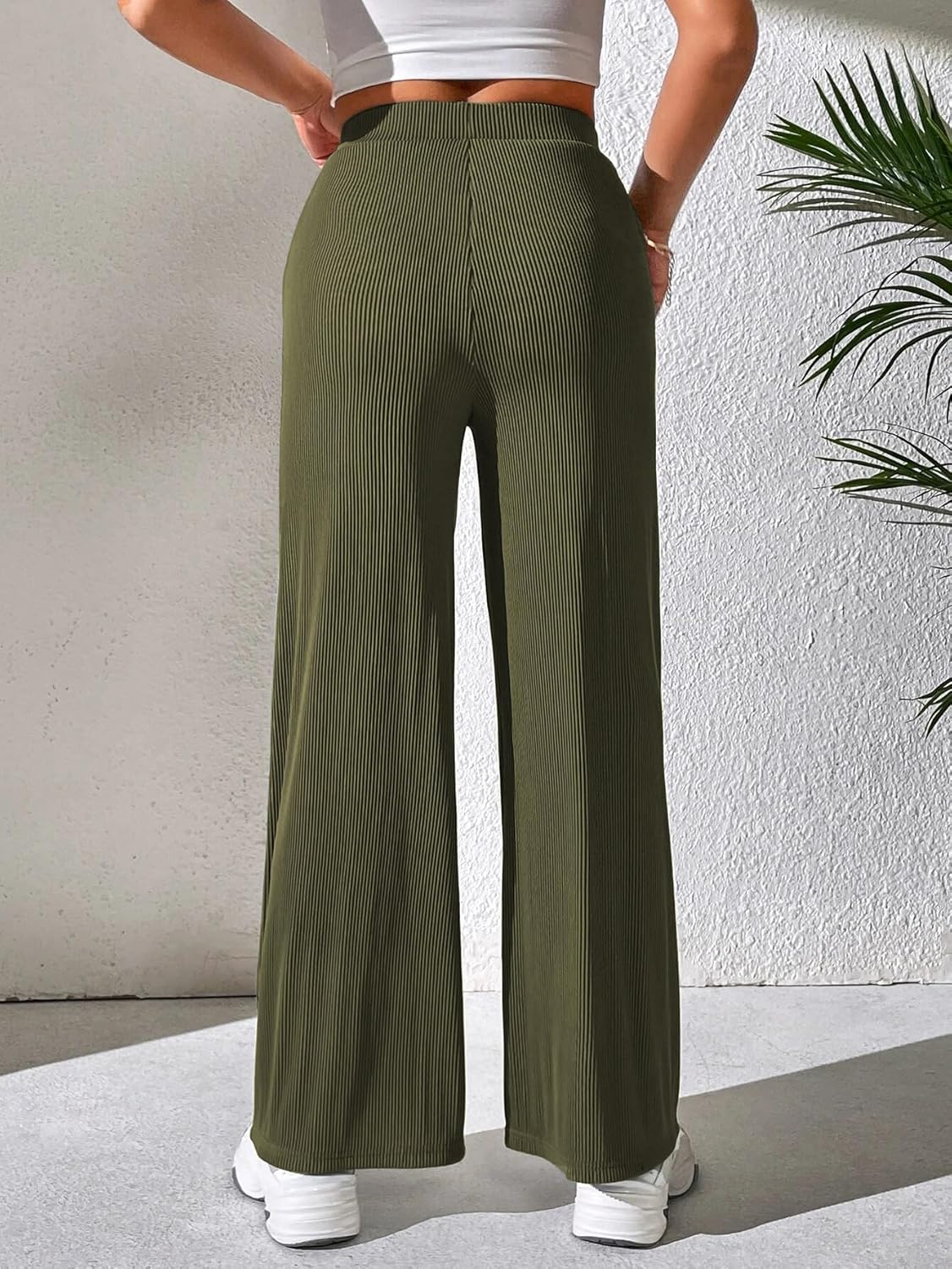 Olive Green Wide-Leg Trousers