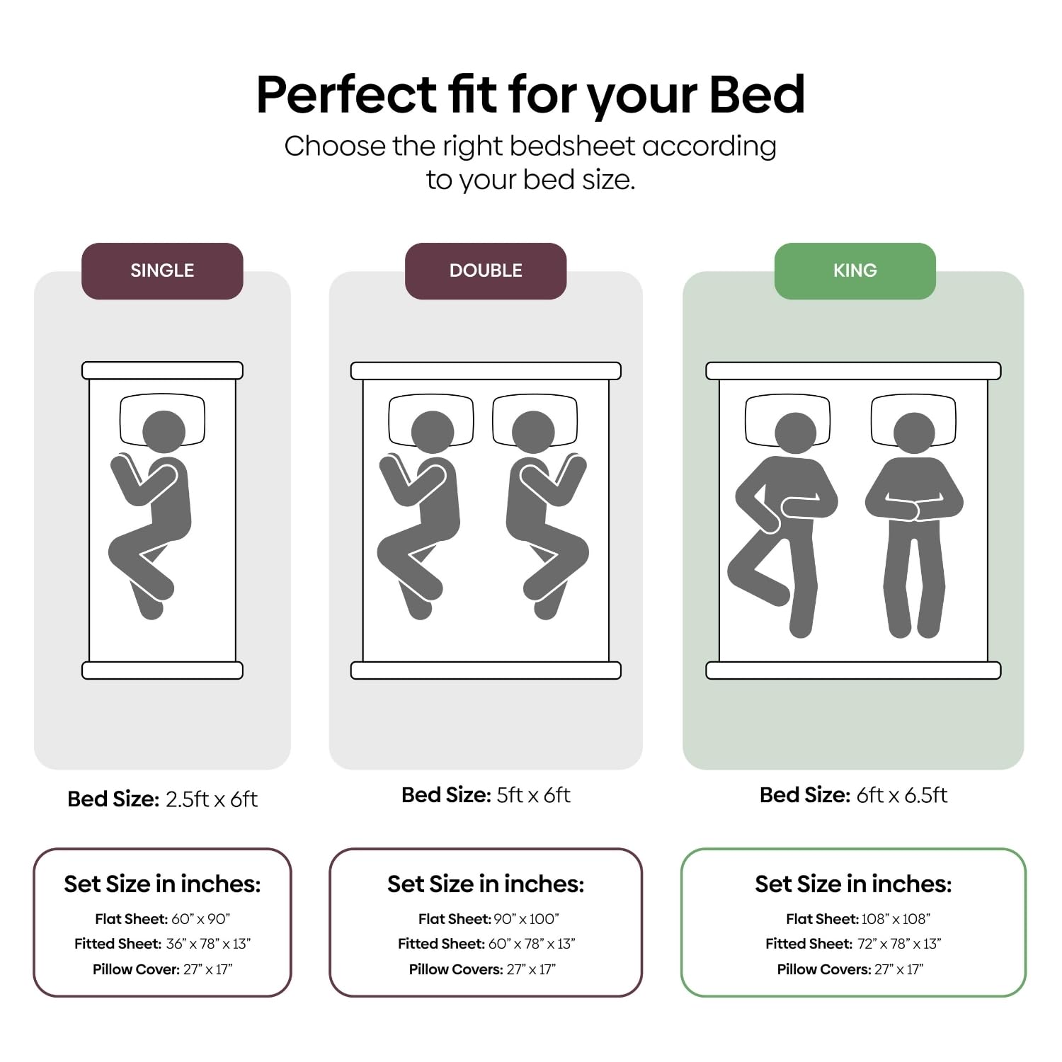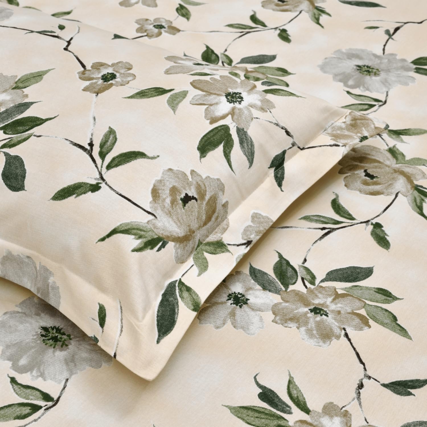 Bedsheets for King Size Bed- The bedsheet (flat) measures 108 × 108 inches, perfectly accommodating standard king mattresses with ample drape. Two pillow covers (27 × 17 inches) are included for a coordinated bedroom look. This trusted Haus & Kinder set offers shrink‑resistant and fade‑resistant features, maintaining its vibrant patterns and fit through countless washes.