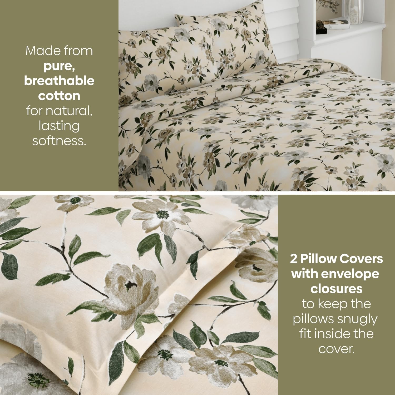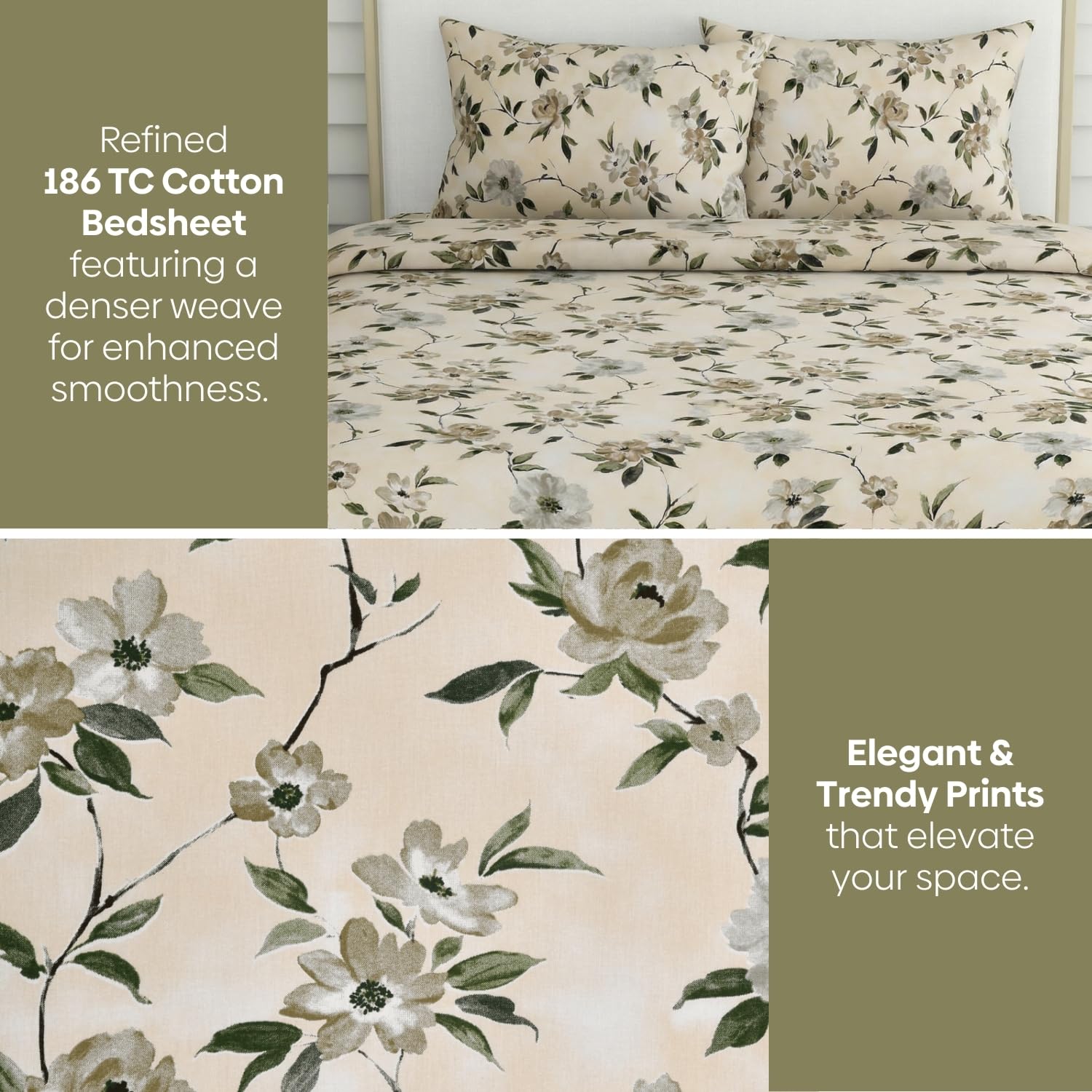 100% Pure Cotton Bedsheets-Ideal for everyday use, this cotton bedsheet for king size bed delivers cool, cozy comfort—especially suited for hot and humid climates—while softening further over time. The set is fully machine washable, making care effortless and convenient.