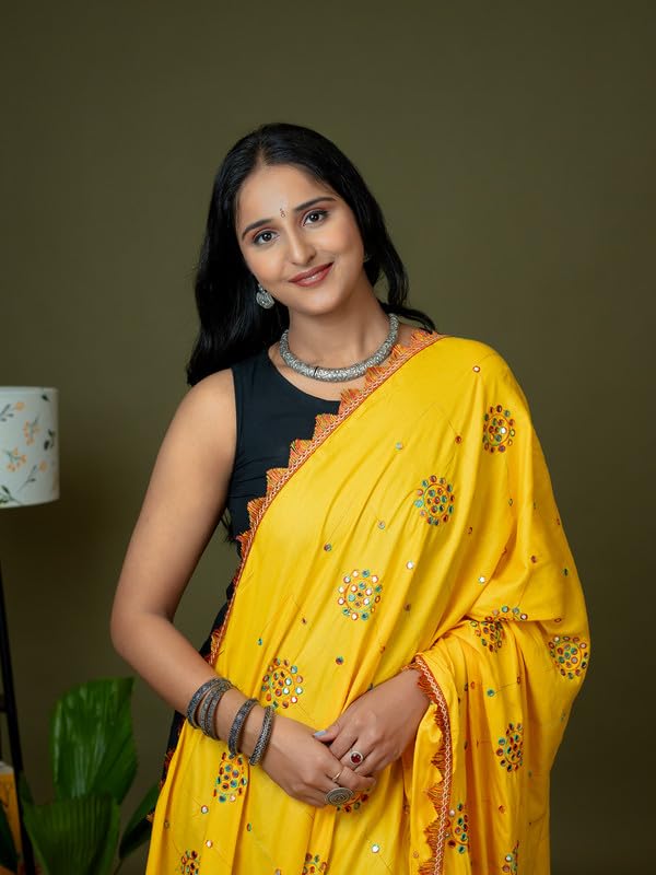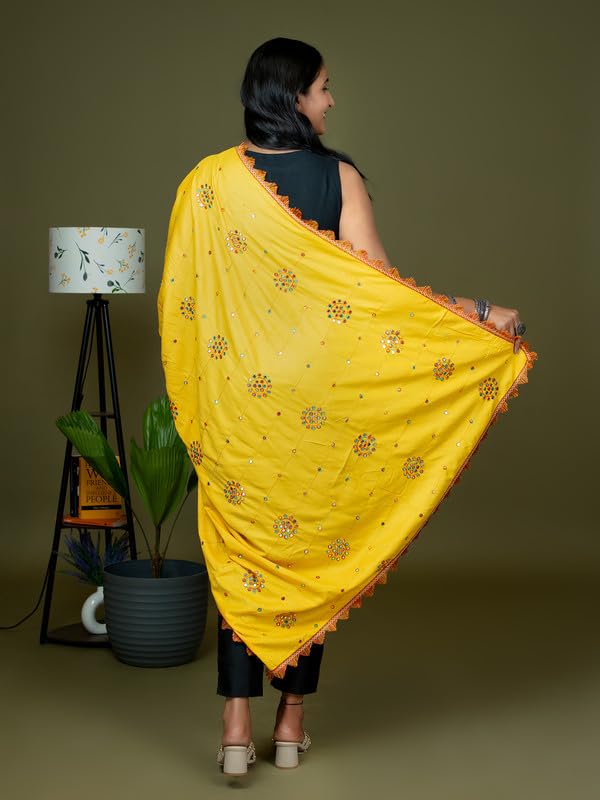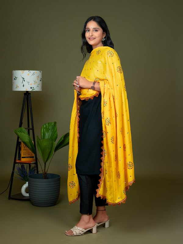 Celebrate the spirit of tradition and culture with this stunning Viscose Rayon Kutch Mirror Work Dupatta, perfect for festive occasions like Navratri, Garba nights, weddings, and traditional events. Crafted from premium-quality viscose rayon, this 2.5-meter-long dupatta features all-over colorful embroidery and traditional Kutch-style mirror work, creating a vibrant ethnic statement. The dupatta is finished with tassel lace detailing on all edges, adding flair and movement to your look. Whether you’re pairing it with a plain kurta, chaniya choli, or lehenga, this dupatta brings a handcrafted richness that instantly elevates any outfit. Lightweight yet richly adorned, this dupatta is a must-have for your festive wardrobe.