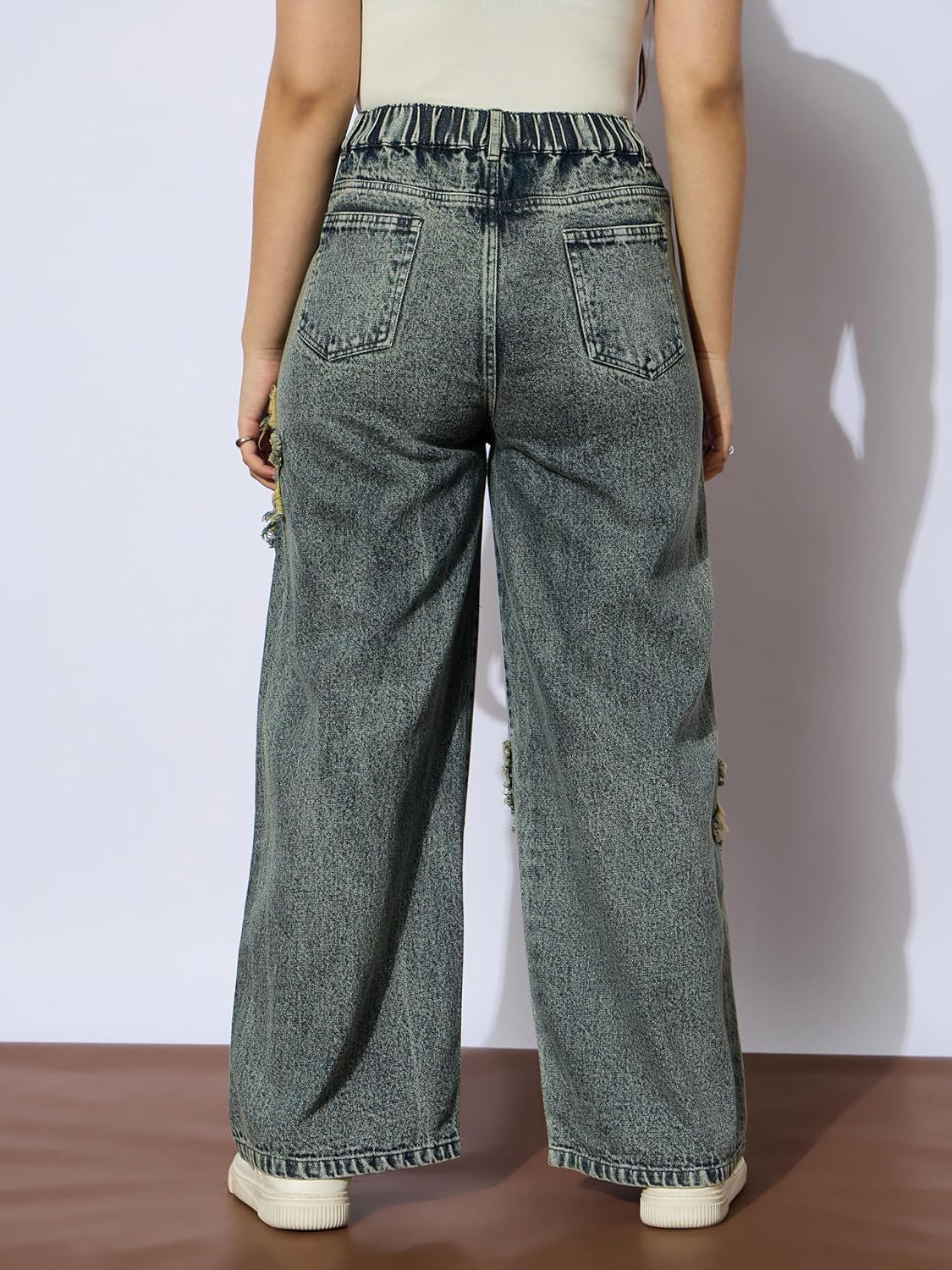 #Ice #Blue #Front #Distrace #Straight #Jeans,