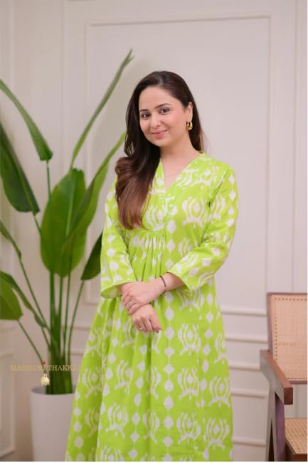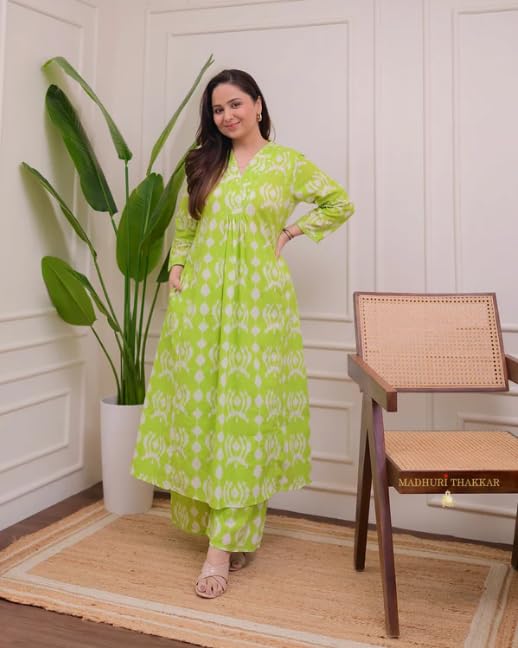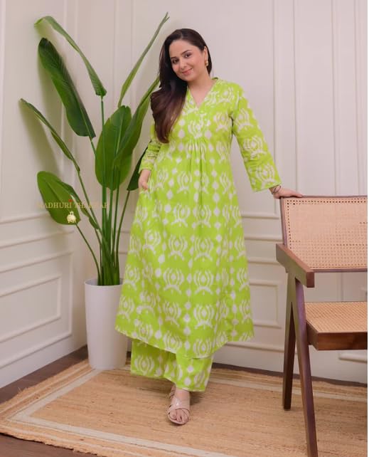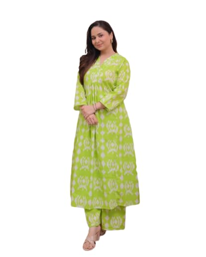 Make a striking style statement with this elegant ethnic kurta set featuring a bold pink geometric pattern on a cream base. The contemporary V-neck design is complemented by comfortable three-quarter sleeves and a graceful A-line silhouette that flows beautifully. Crafted from soft fabric, this coordinated set includes a matching palazzo, perfect for both casual outings and festive occasions. The modern geometric print adds a fresh twist to traditional Indian wear, while the relaxed fit ensures all-day comfort. The versatile cream and pink colour combination makes it suitable for various occasions, from morning functions to evening gatherings. This ensemble pairs wonderfully with minimal accessories and comfortable footwear for a complete look. Hand wash recommended to maintain the vibrancy of the colours.