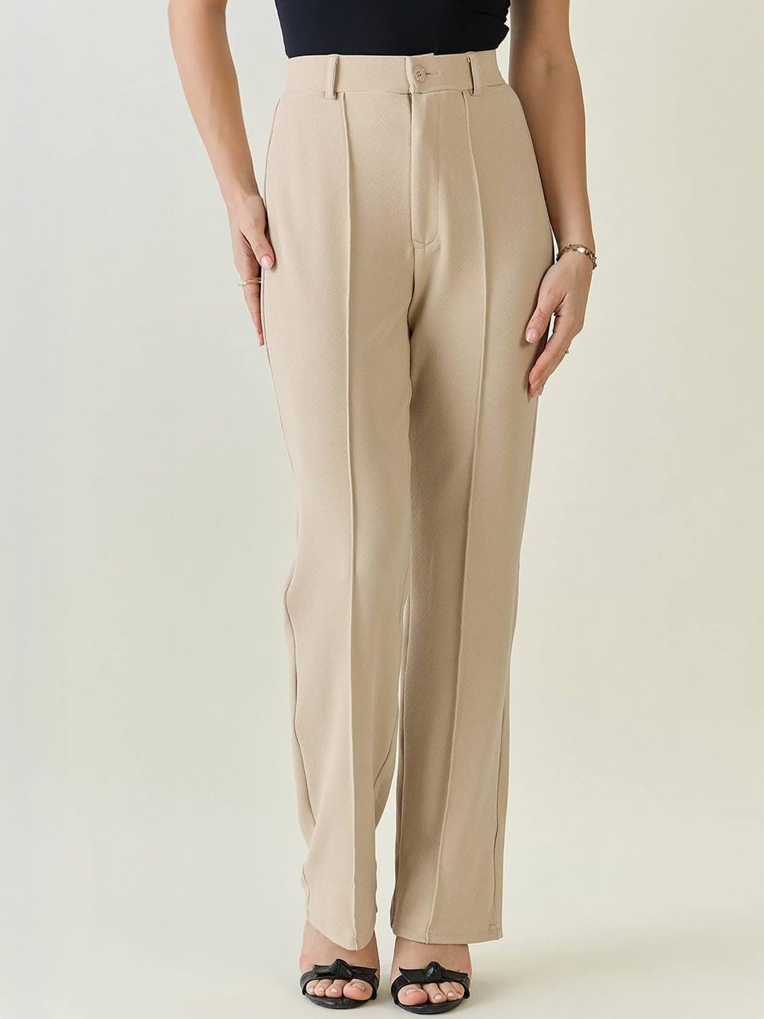 KOTTY Straight Leg Pants Ladies Stretch Button Knit Pants