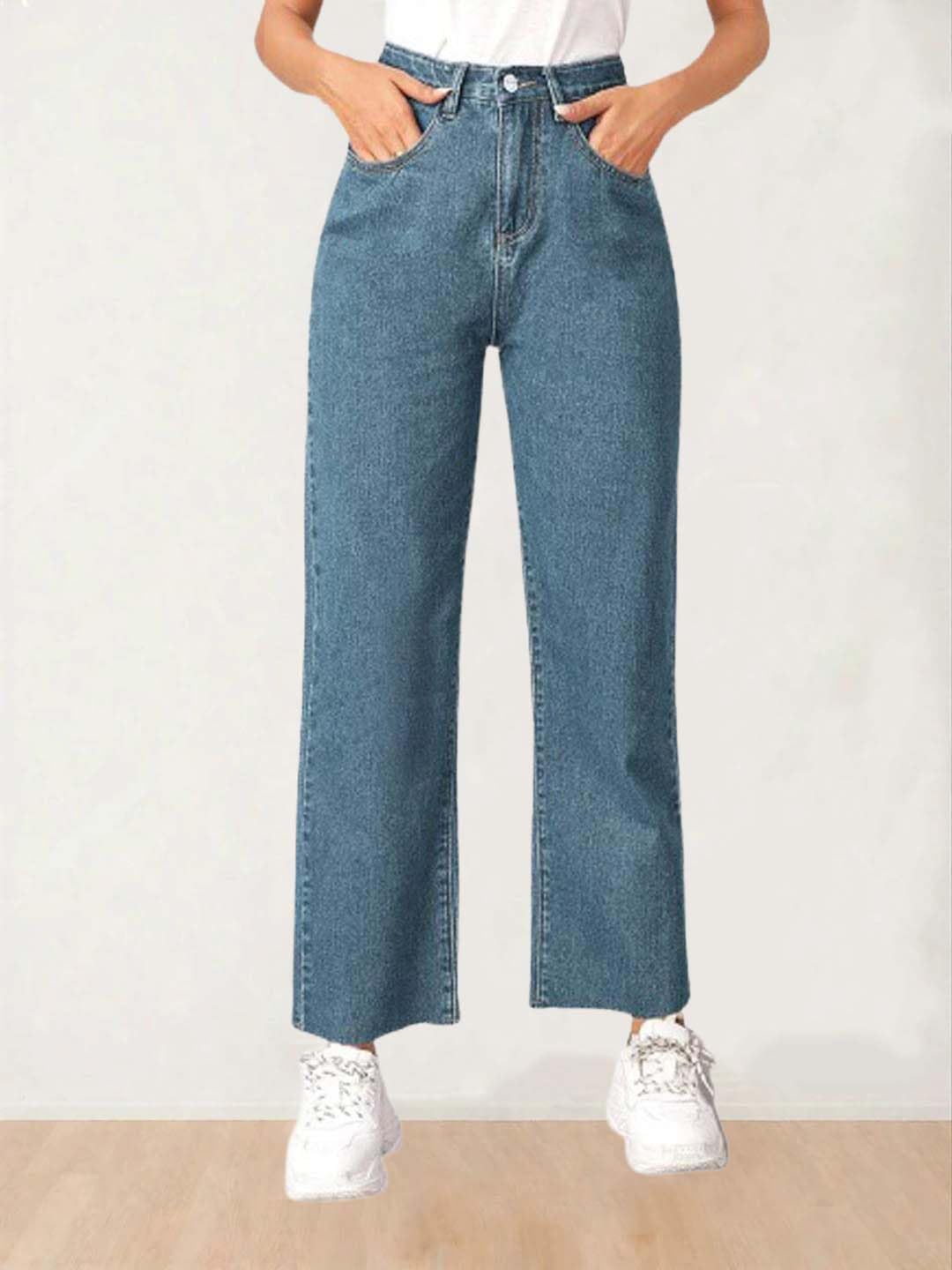 #KOTTY #Womens #HighWaist #Button #Relaxed #Fit #Casual #Ankle #Length #Stylish #Jeans,