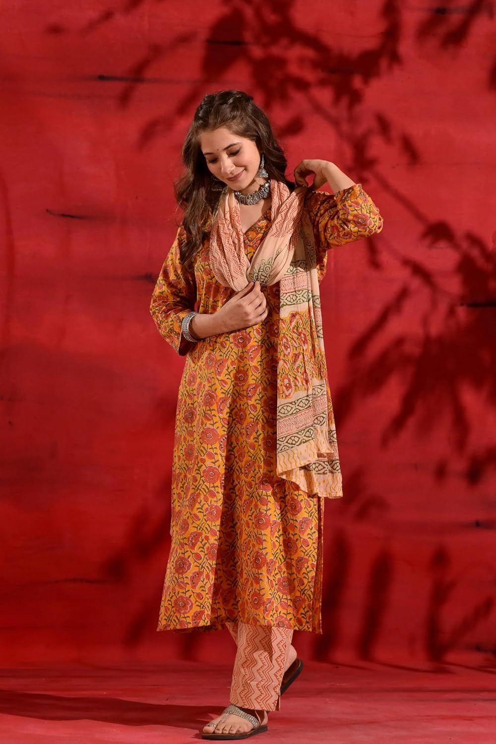 Absolutely love this 3-piece kurta set! The colors are vibrant, and the fabric feels soft yet durable. It fits true to size (ordered S) and drapes beautifully without clinging. The stitching is neat, and the overall design is both traditional and modern—perfect for casual outings or festive wear. Definitely worth the price. Got lots of compliments already! Would highly recommend.