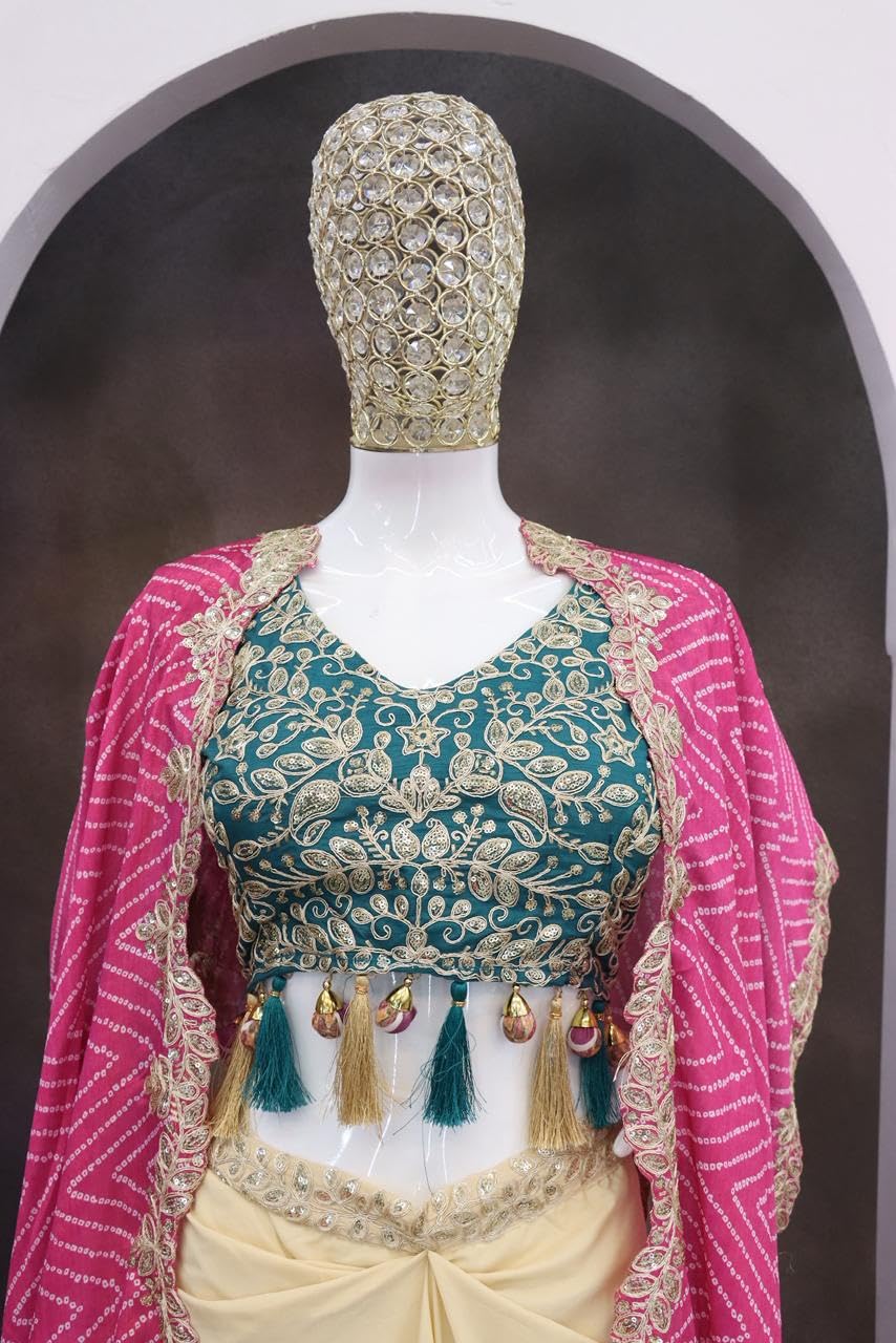 Lehenga Choli For Womens Pure Crep Silk Fabric With Beautiful sequin embroidery Lehenga Choli wedding-letest-fashion- Dhoti Style with Shrug Purple