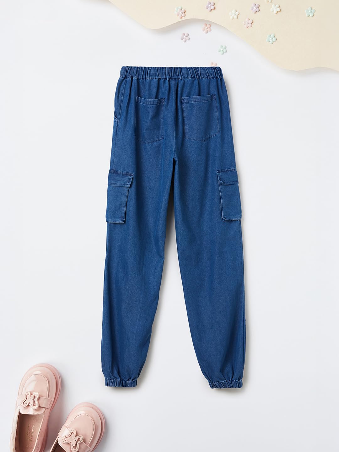 Girls Solid Denim Cargo Joggers