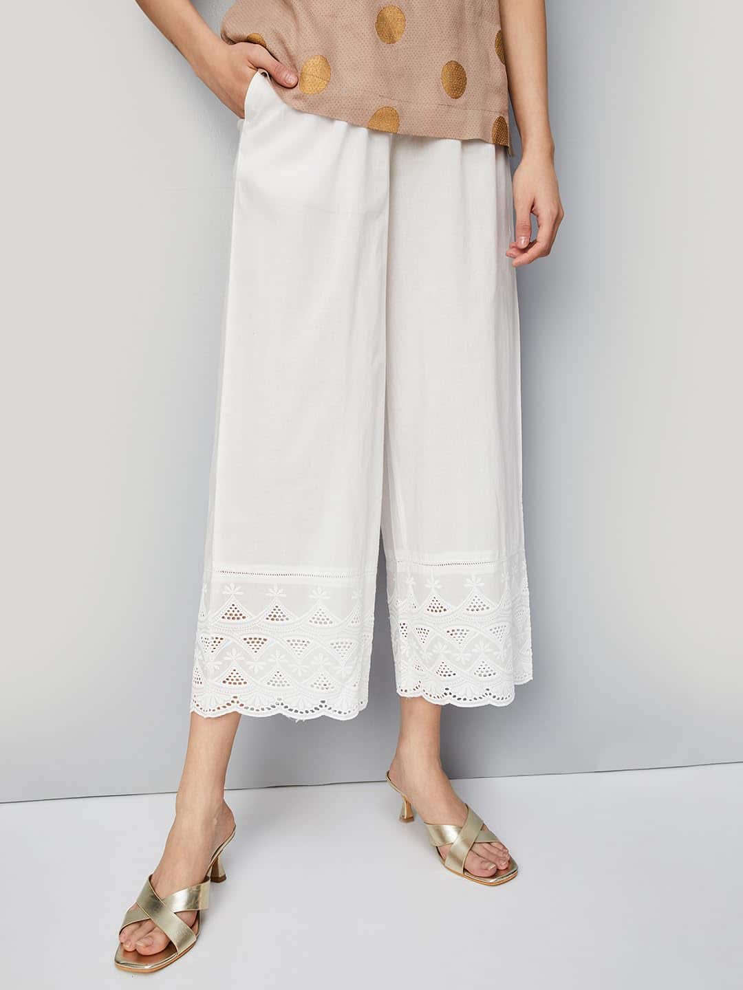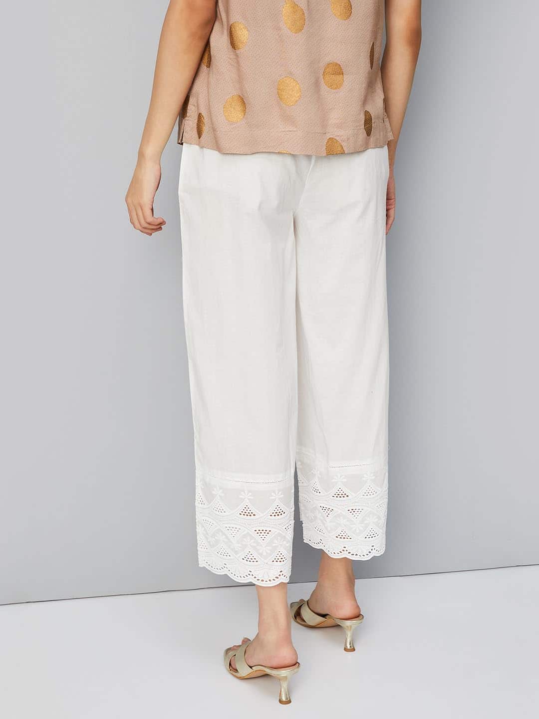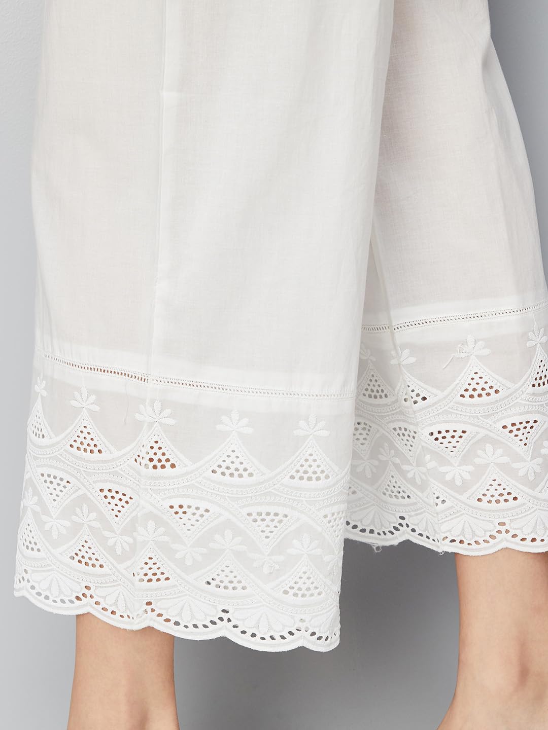 Women Embroidered Palazzos with Scalloped Hem