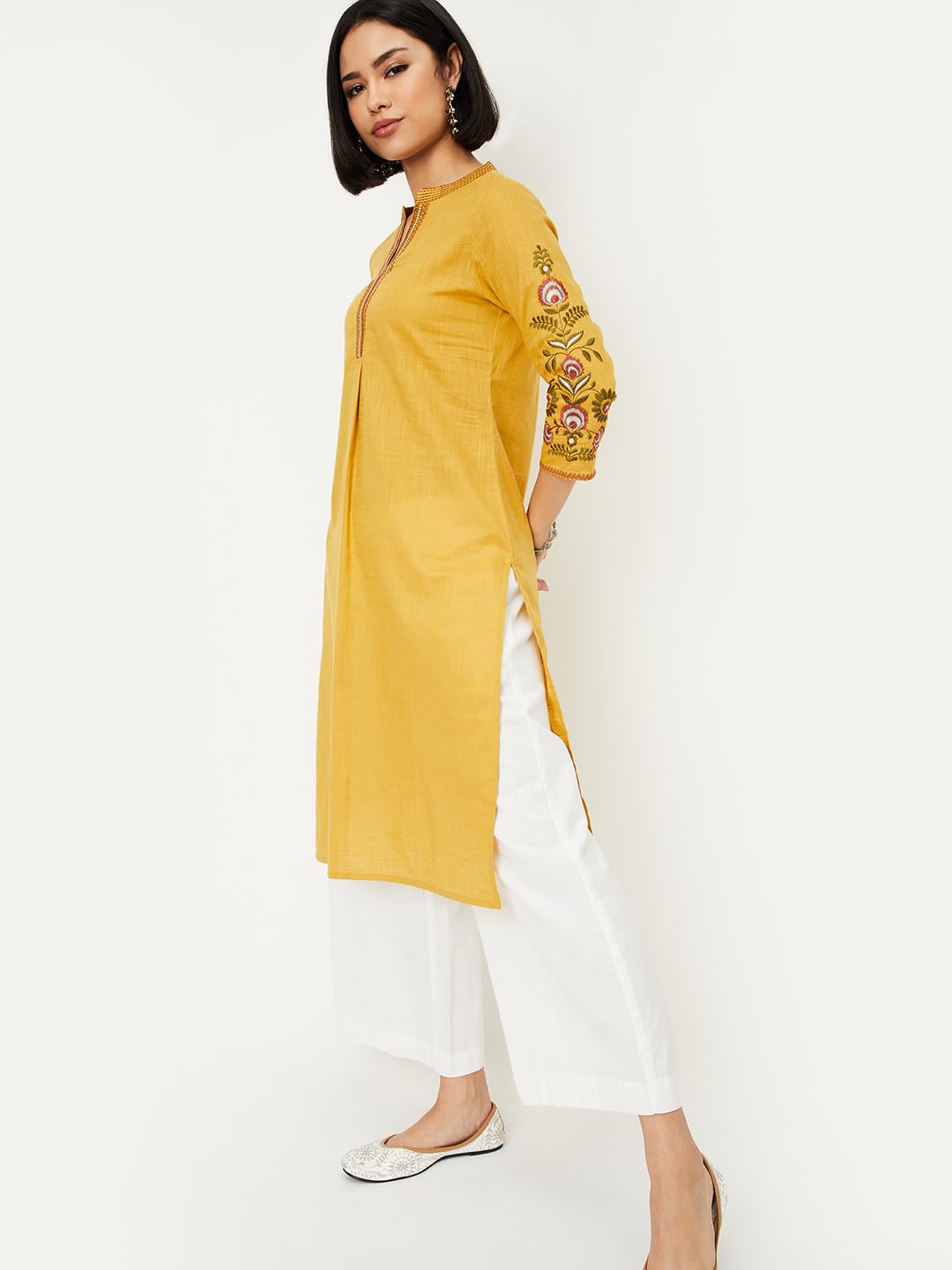 Nice cotton kurta.. Embroidery work is beautiful.. Comfert to office wear 😍