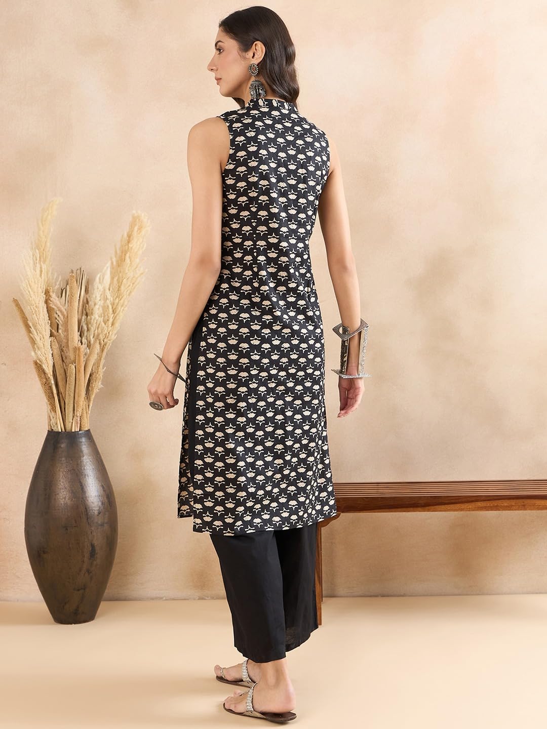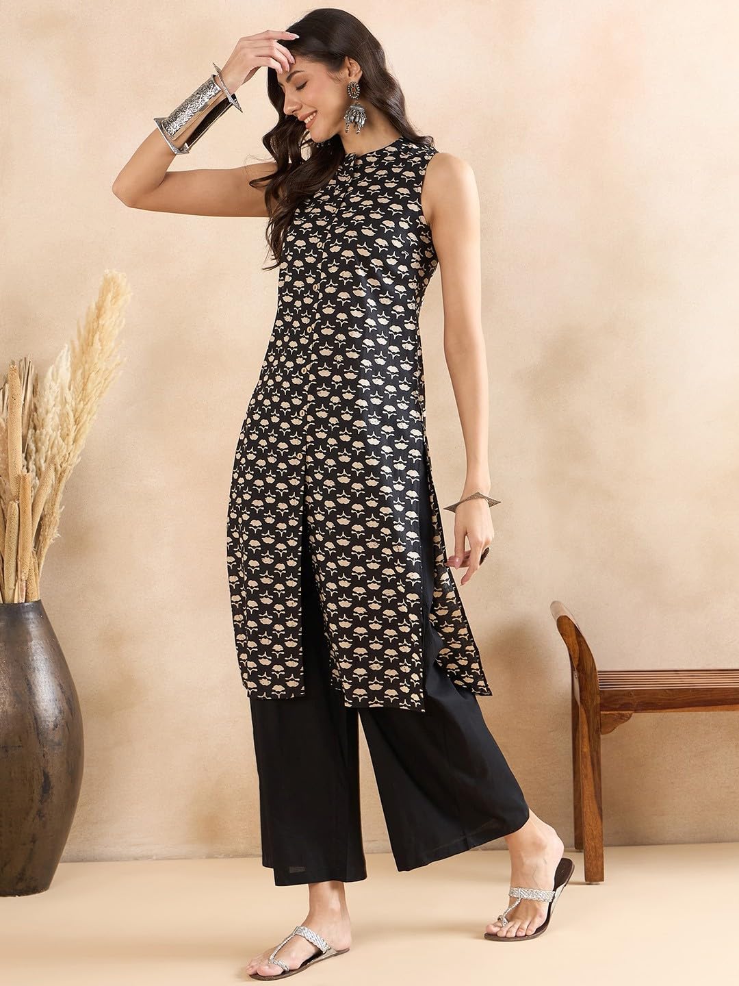 MK54 miss fame Women's Sleeveless Printed Cotton Kurta with Palazzo SPN-REESCMK54 miss fame Women's Sleeveless Printed Cotton Kurta with Palazzo SPN-REESC