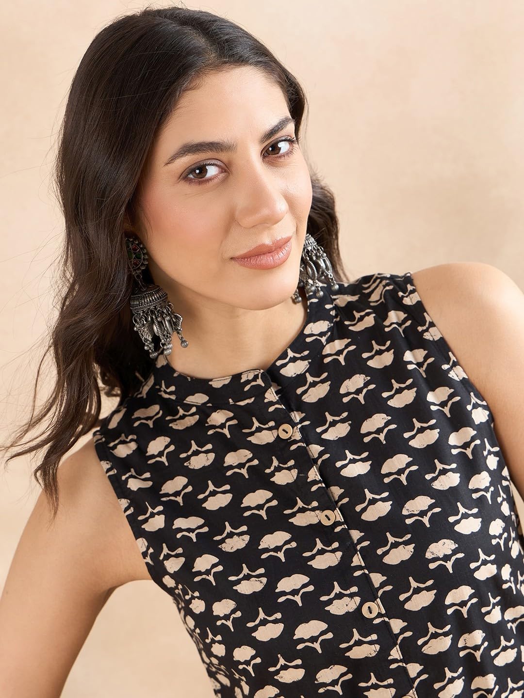13 reviews for miss fame Women’s Sleeveless Printed Cotton Kurta with Palazzo – (Brown)