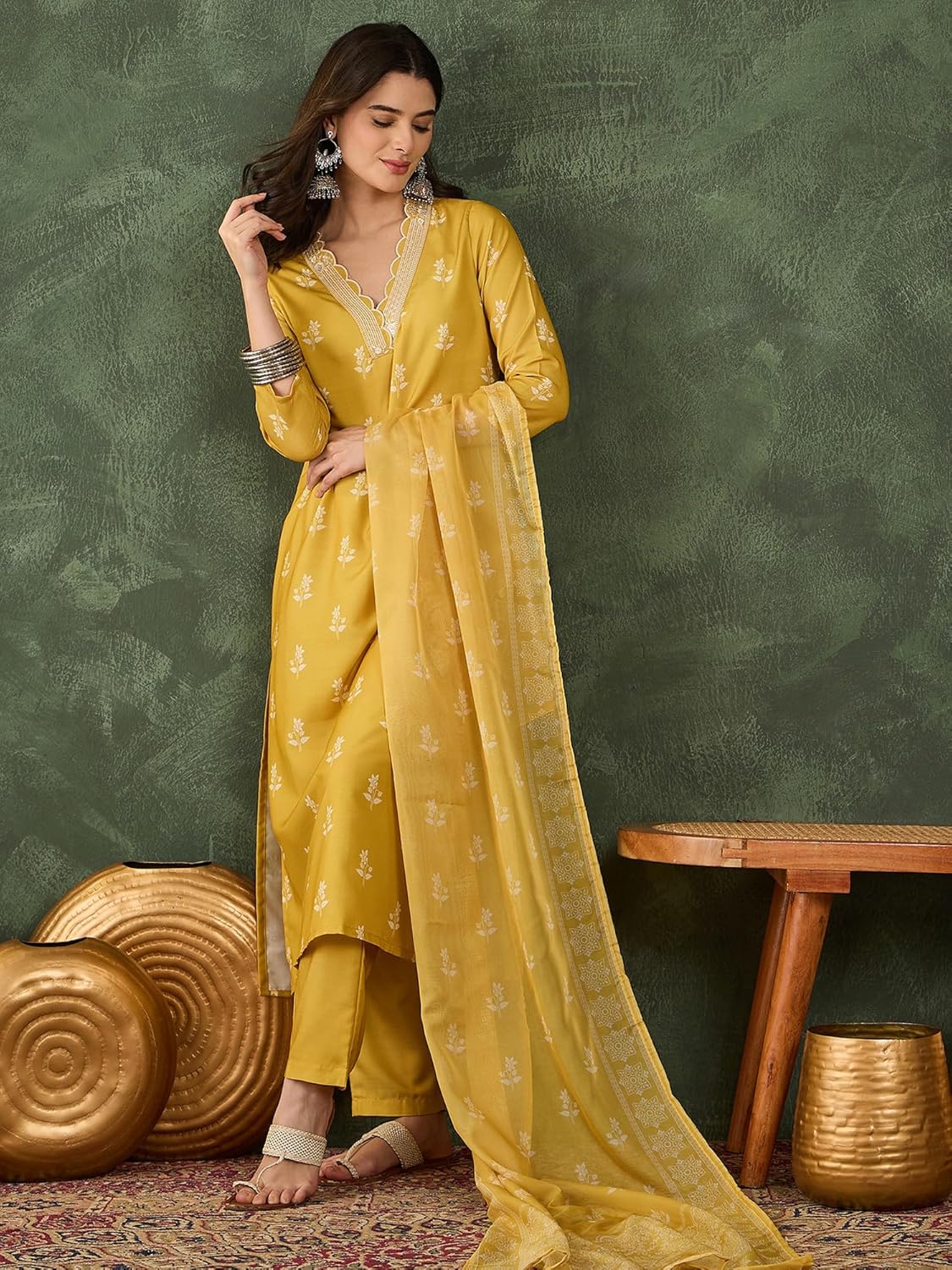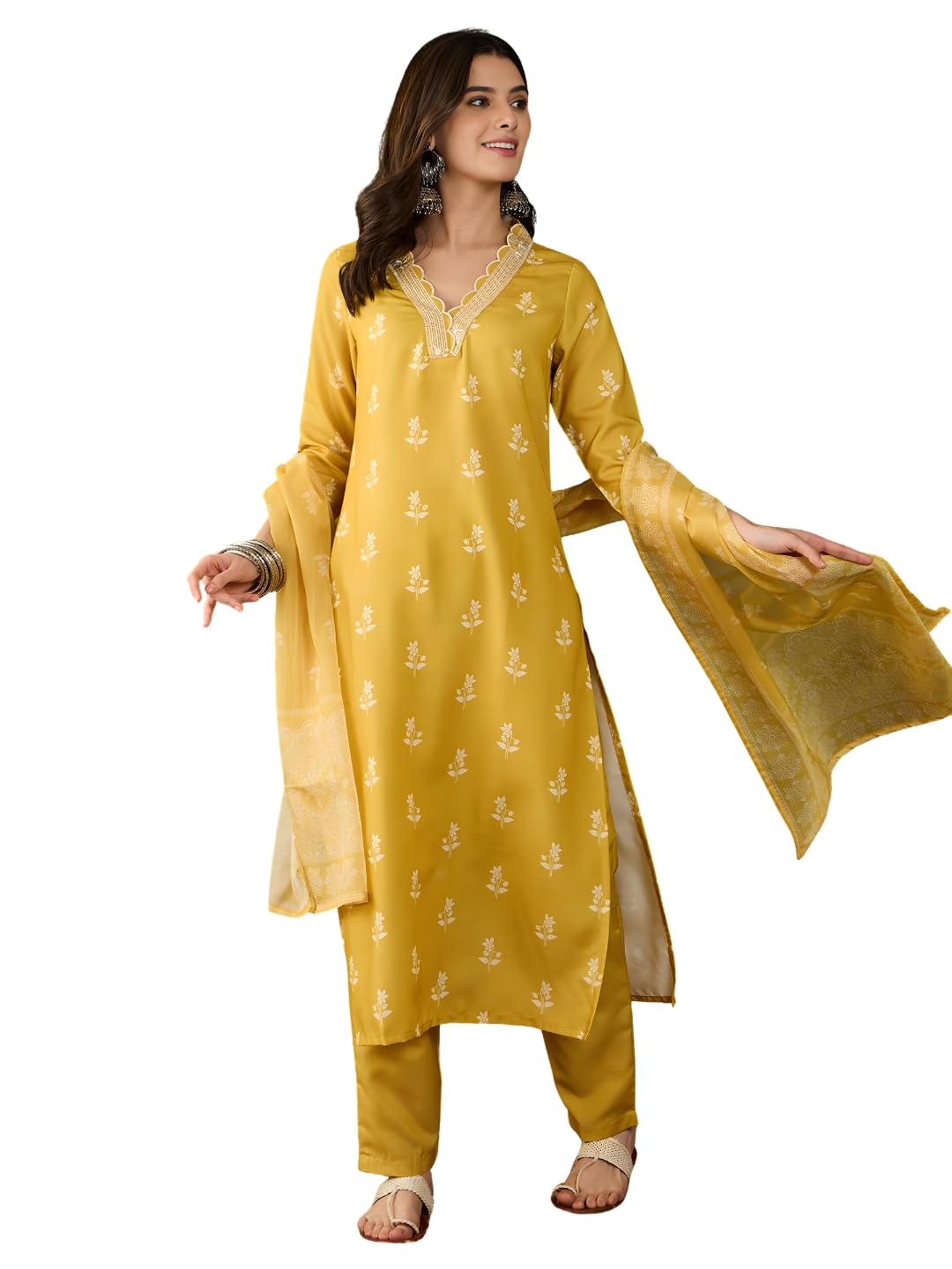 Naixa Women’s Rayon Embroidered Straight Kurta with Pant and Dupatta Sets (NX-780)