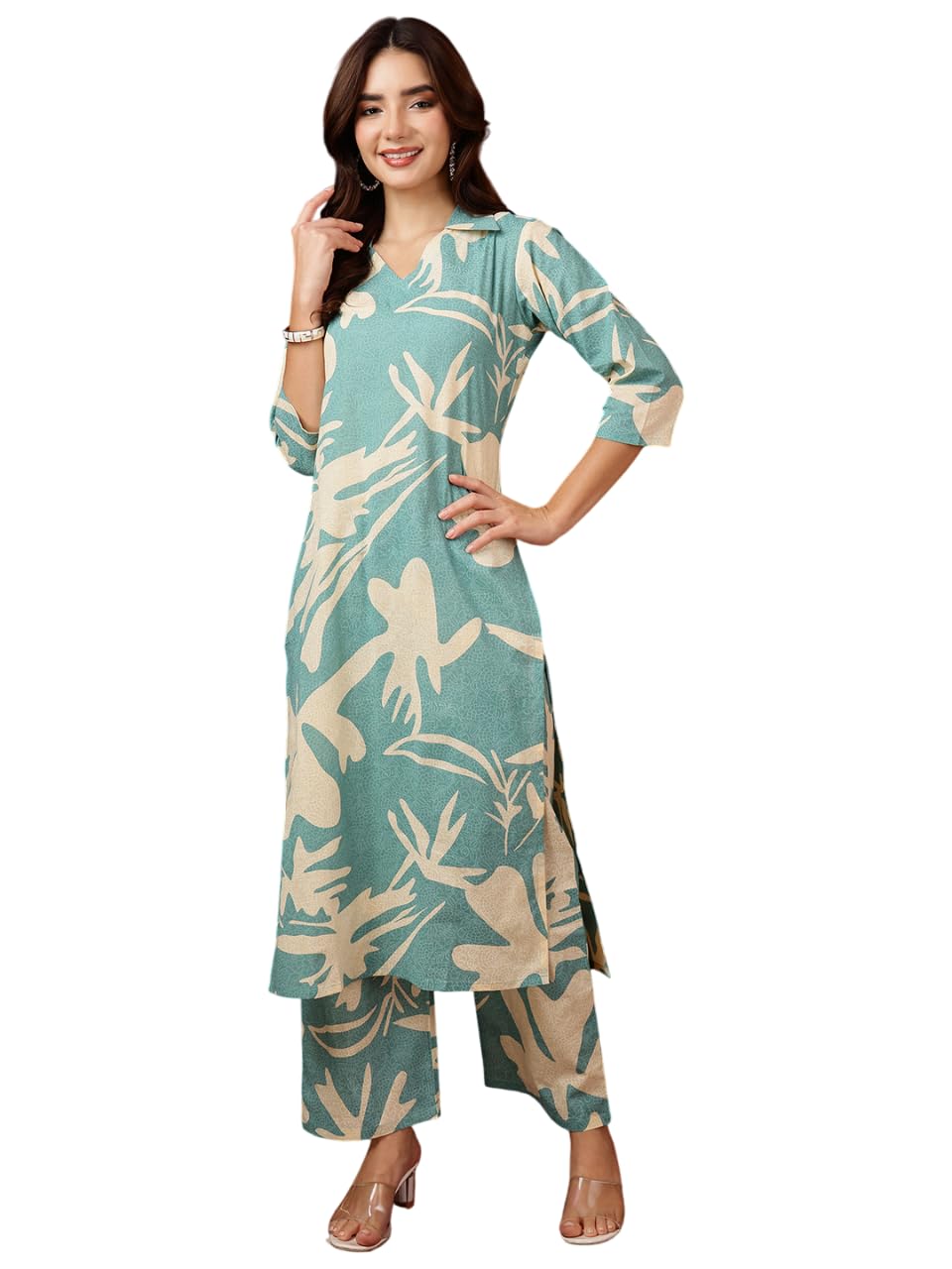 Step out in style with the NIVANA Floral Printed Collared Kurta with Palazzo. Designed for comfort and elegance, this outfit features a smart collar and vibrant floral prints. Perfect for casual outings or semi-formal events, the set includes a matching palazzo to complete your chic ethnic look.