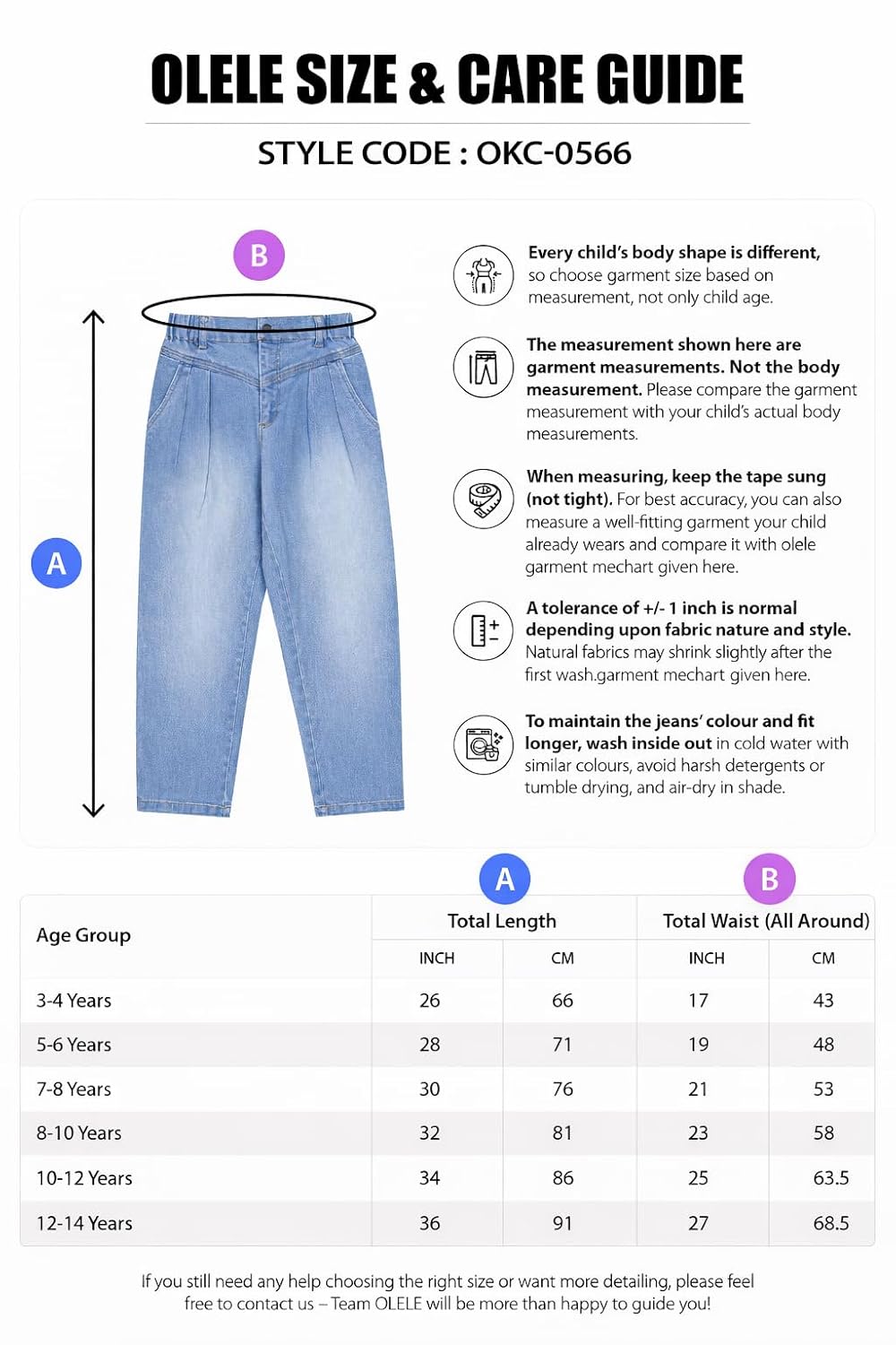 Bought one for my daughter and she loves them, very comfortable and the elastic waist band is perfect for her as she doesn’t like the tight fitting jeans. I highly recommend jeans from Olele.