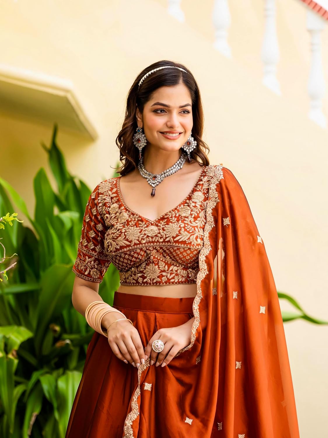 Elevate your ethnic wardrobe with our exquisite semi-stitched lehenga choli set, complete with a matching dupatta. Designed to exude elegance and charm, this ensemble seamlessly combines traditional craftsmanship with contemporary style. Crafted from superior quality fabrics, the lehenga features intricate embroidery, delicate embellishments, and meticulous detailing that showcase fine artistry.With its semi-stitched design, the lehenga offers the flexibility to customize the fit according to your measurements, ensuring a flattering silhouette and comfortable wear. The accompanying choli beautifully complements the lehenga with its intricately embroidered neckline and sleeves, adding a touch of sophistication to the ensemble.