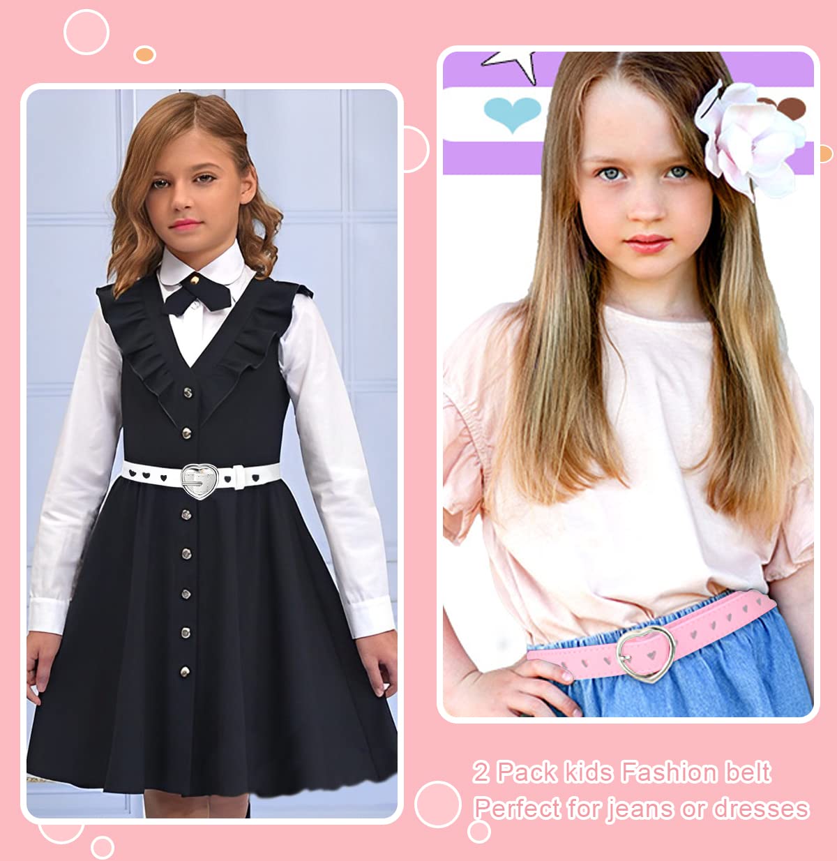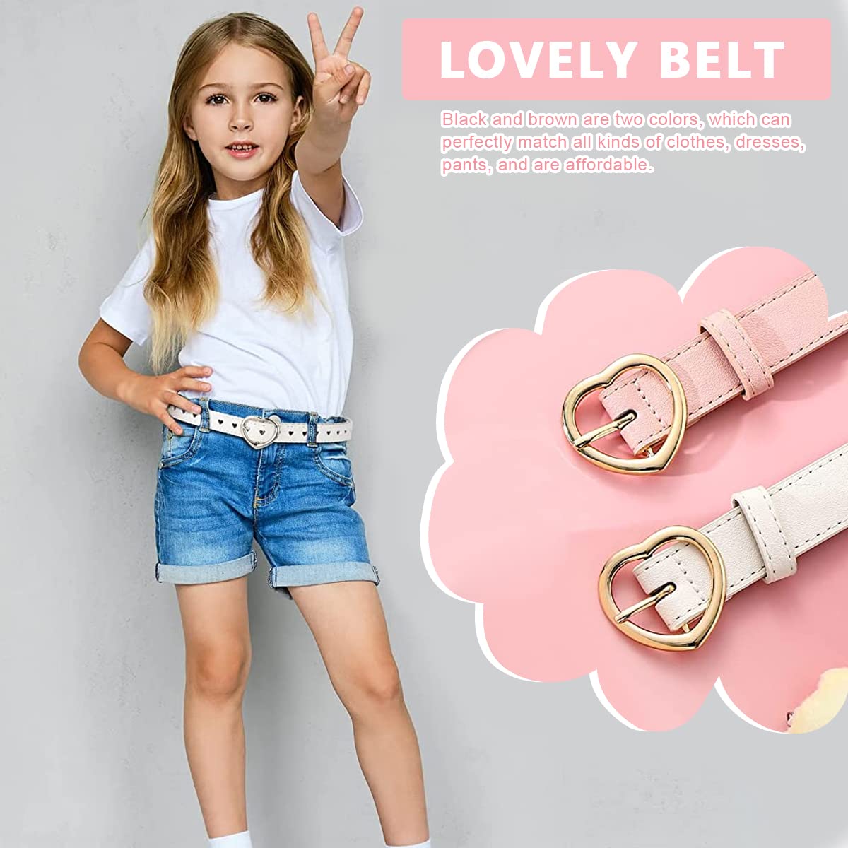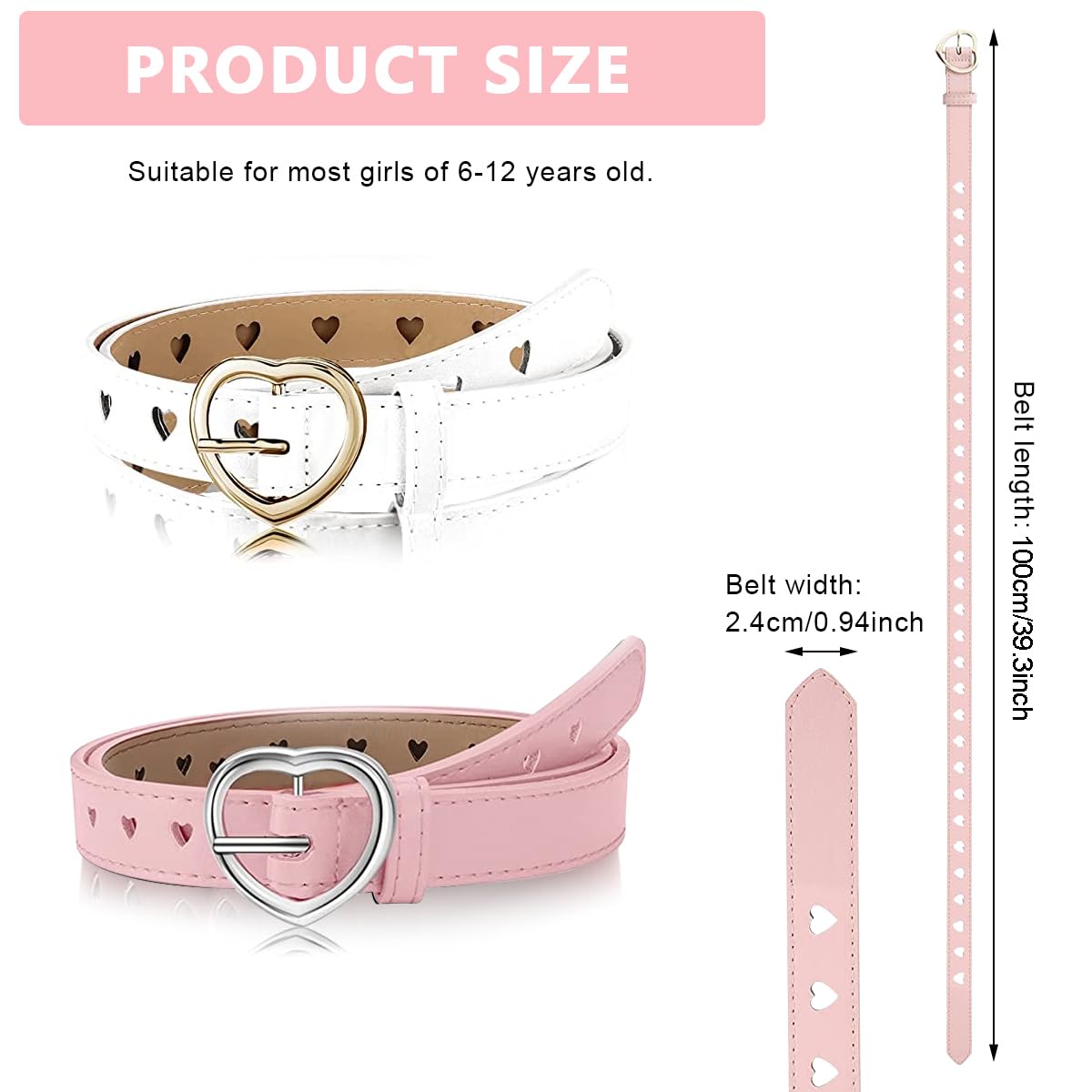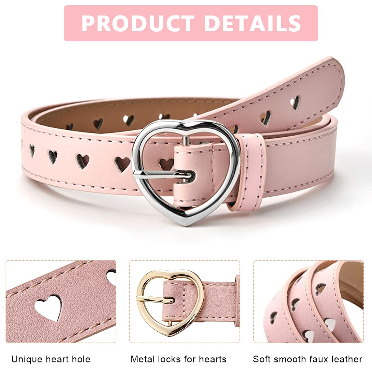 Made from good grade PU material, these belts are both soft and durable, while also being wear-resistant. It comes with a heart-shaped metal buckle that is sturdy & durable as well.