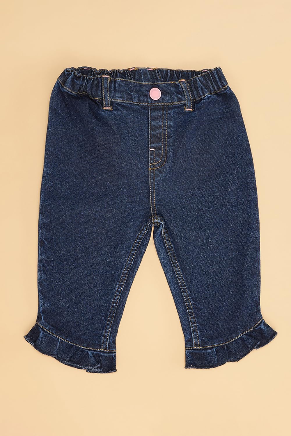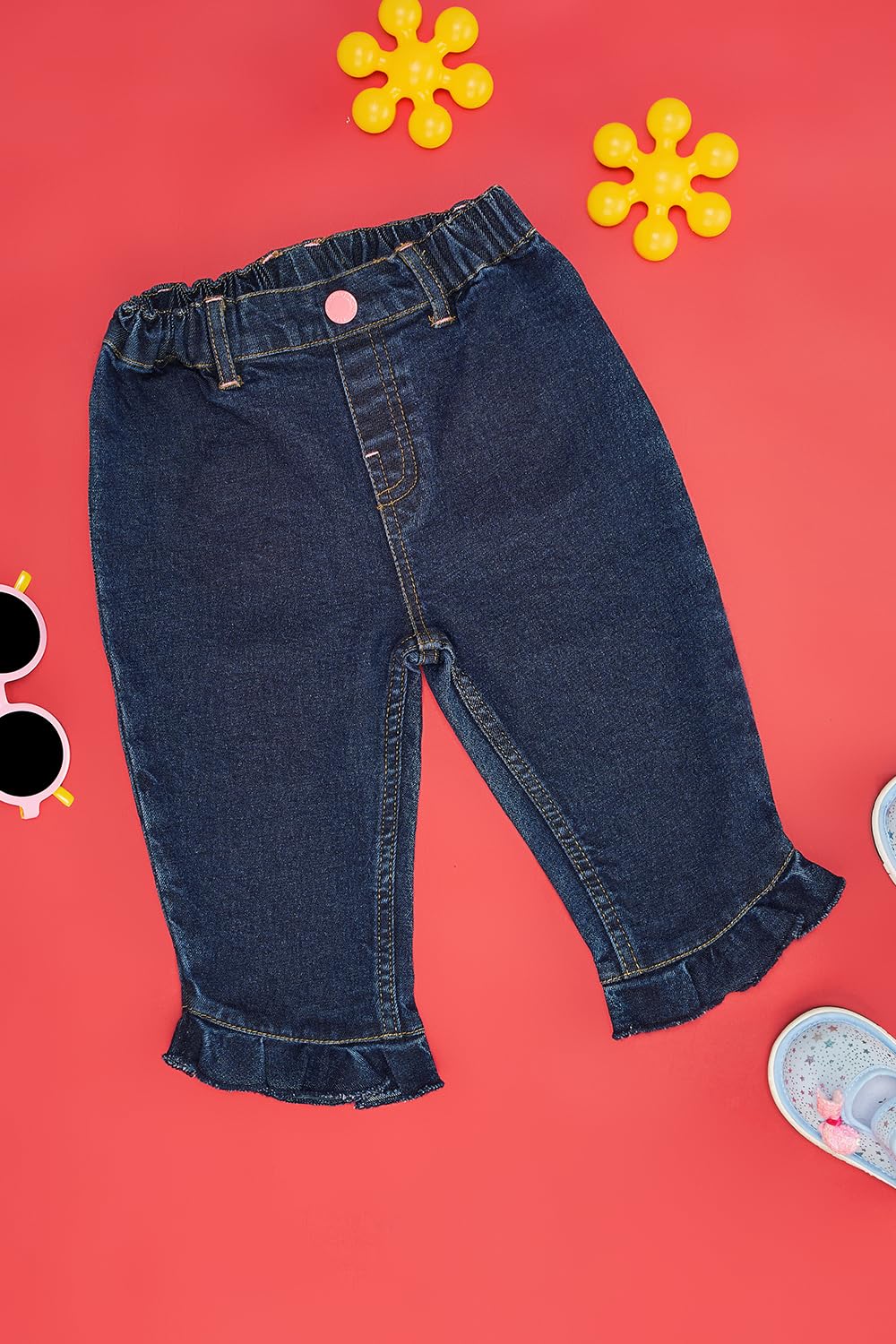 The cutest and prettiest pair of jeans for the tiny little princess. They feature a zipper fly button closure, multiple pockets, bow detail and frills at the hem. Meticulously constructed using top-notch fabric to ensure a pleasant feel while wearing.